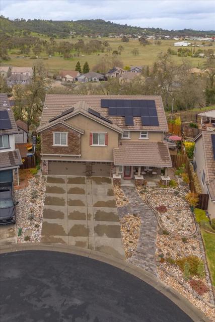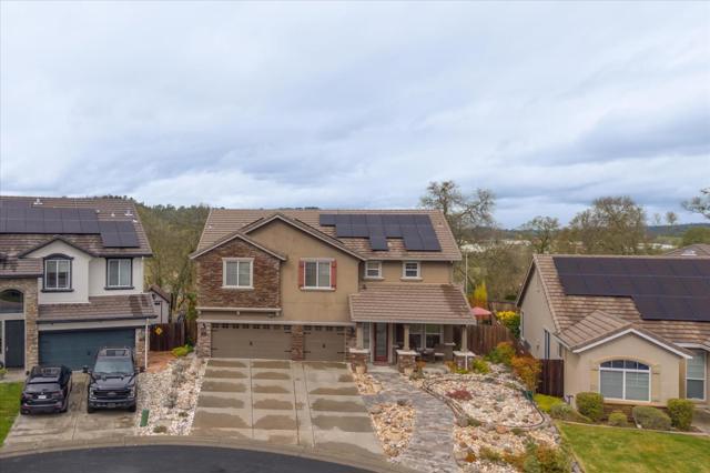 Welcome to your dream home in the gated community of Gold Creek Estates, offering comfort and resort-style living. This semi-custom two-story home sits on a level lot and features 4 bedrooms, 3 full bathrooms, and a three-car garage, perfect for everyday living and entertaining. The bright, open floor plan includes custom audio and a cozy gas fireplace in the great room. The kitchen shines with granite countertops, a center island, pantry, and a nearby full bath. A downstairs hobby room offers flexibility and can easily be converted into a fifth bedroom, ideal for guests, multigenerational living, or a home office. Enjoy outdoor living in the backyard with a custom pool and spa with waterfall, outdoor kitchen, and low-maintenance space ideal for relaxing or hosting. Upstairs features all four bedrooms, plus custom built-in shelving with a dedicated workspace, making working from home comfortable. The spacious primary suite includes room for a sitting or workout area and a spa-like bath. An upstairs laundry room adds convenience. Gold Creek Estates offers a clubhouse, pool, fitness center, walking trails, front-yard maintenance, and close access to New Hogan Lake and La Contenta Golf Course. Turn-key and low maintenance, this home is ready to enjoy the Gold Country lifestyle.