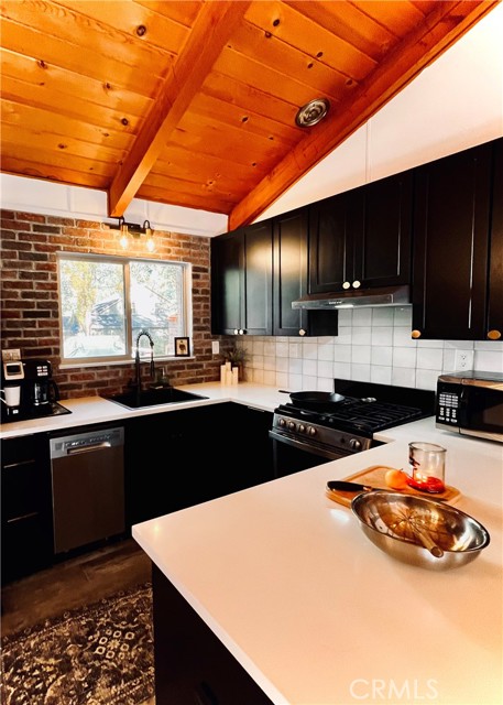 Inside, you’ll find a turnkey open-concept living space with a cozy wood-burning fireplace, a sleek kitchen with new appliances and quartz countertops, two spacious bedrooms, and a beautifully remodeled bathroom. It comes fully furnished.