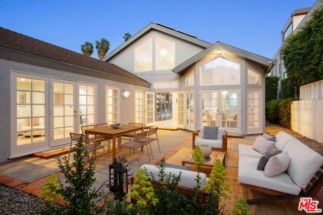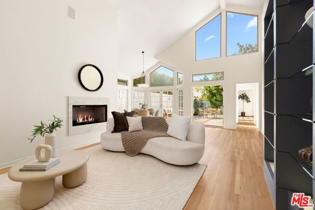 Flooded with natural light & designed for effortless indoor-outdoor living, this refined 3-bedroom, 3-bath residence offers an expansive open floor plan in one of the area's most desirable locations near The Grove & Pan Pacific Park. The home features dramatic 20-foot vaulted ceilings, striking skylights, a cozy built-in fireplace, walls of windows, wood flooring, & recessed LED lighting throughout. A show-stopping chef's kitchen anchors the main living space & is appointed with updated appliances, dual sinks, dishwashers, and ovens, a built-in glass-front side-by-side refrigerator, & quartz counter tops perfectly suited for both everyday living & entertaining at scale. The primary suite is a true sanctuary with luxury hotel style appointments, offering direct access to the backyard, separation from the main living quarters, an exceptionally large walk-in closet with custom built-ins, & a grand en-suite bath. Additional highlights include a formal dining area, 2 bedrooms separated by a full bathroom, an office, powder room, & an expansive living room with French doors. The home is completed by a private backyard & a two-car garage (currently used as a gym), delivering comfort, & a premier central location.