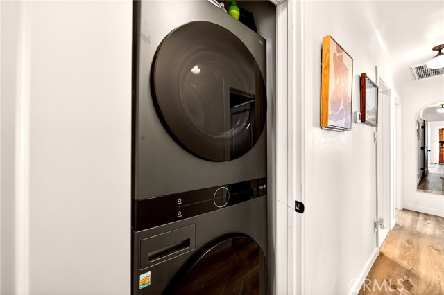 Security film on most windows enhances safety and blocks 99% of UV rays. A high-efficiency LG stackable washer and dryer are included.