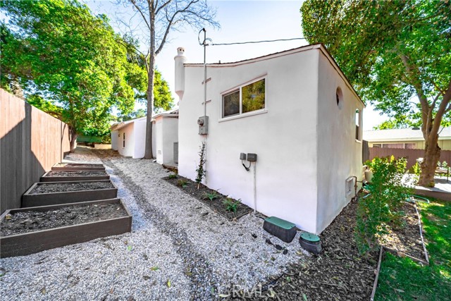 The exterior is thoughtfully designed for both everyday living and entertaining. A deck and pergola create an inviting backyard retreat, complete with an outdoor BBQ, sink, and refrigerator. The property features new landscaping throughout, with front and side fencing, a DG patio area, gravel driveway, and five raised garden beds along the side yard, plus additional planters for gardening. The front yard offers new sod and a sprinkler system, while large planted planters and solar driveway lighting enhance curb appeal. Fresh exterior stucco gives the home a clean, finished look.
