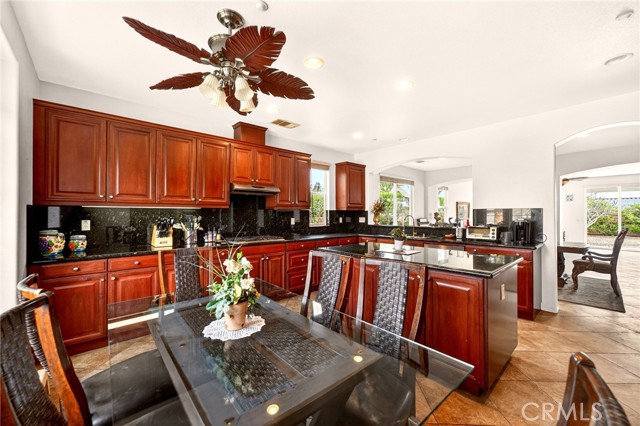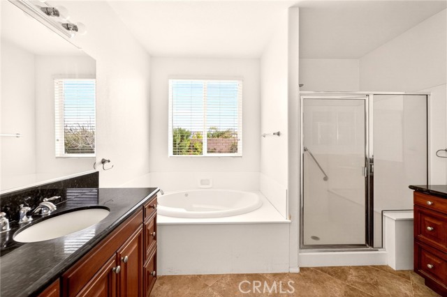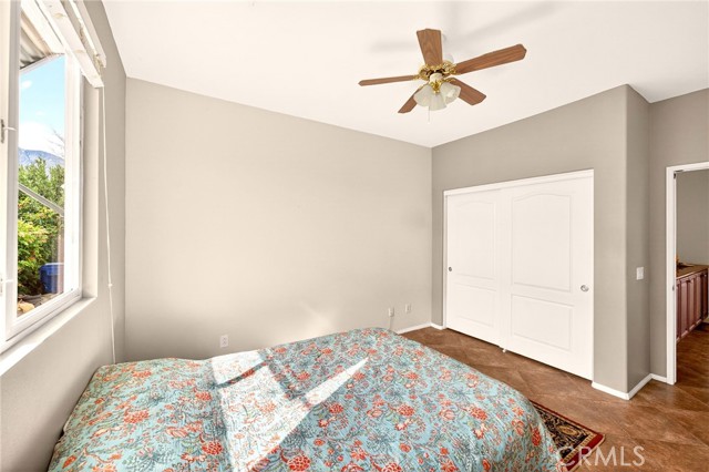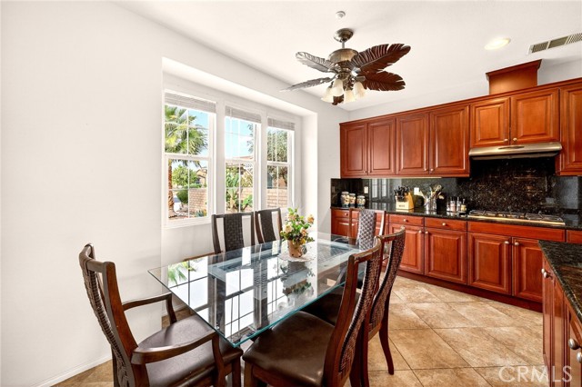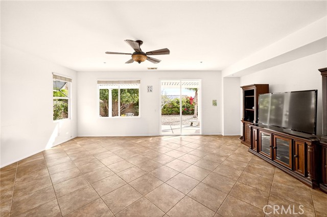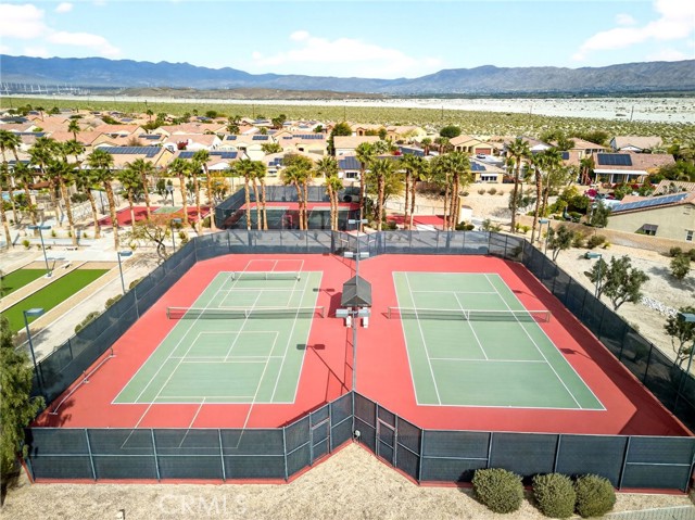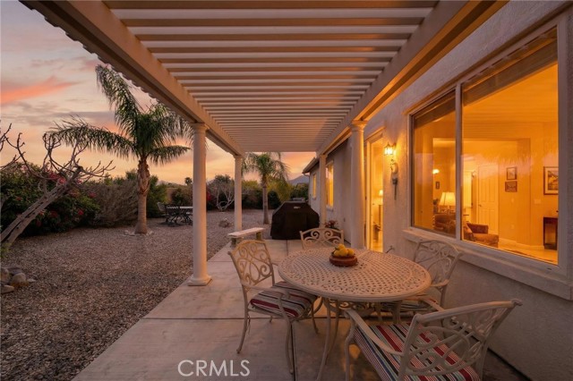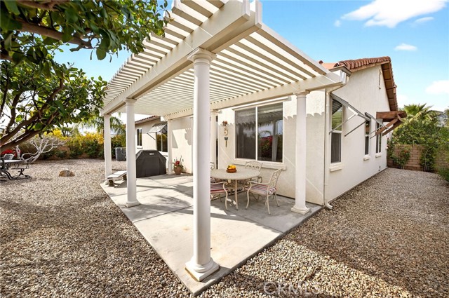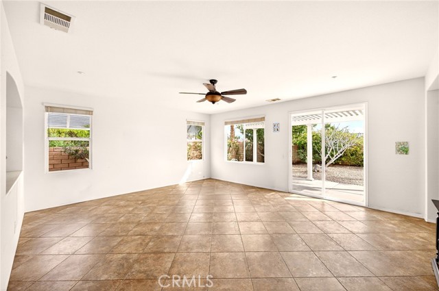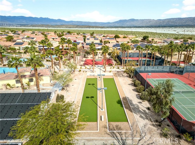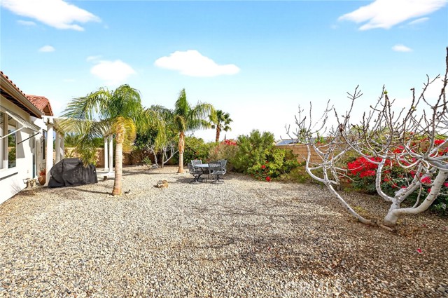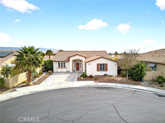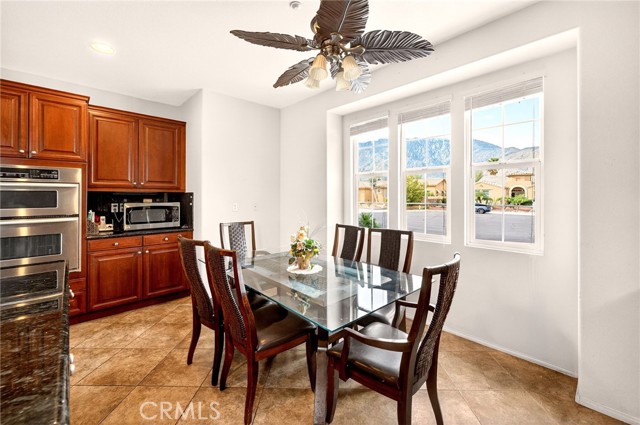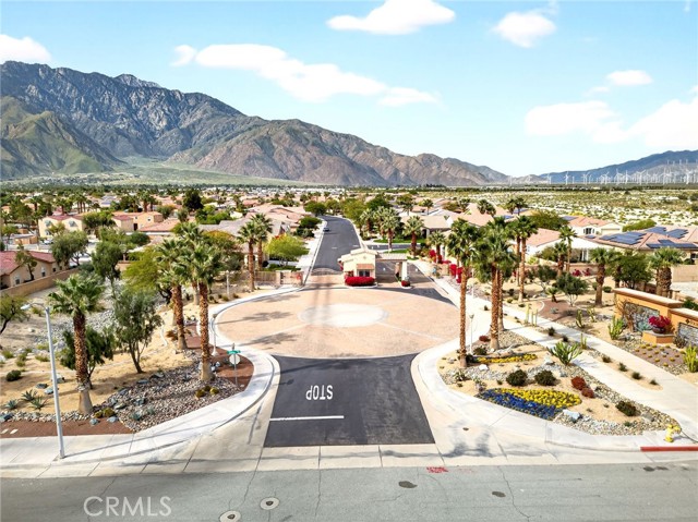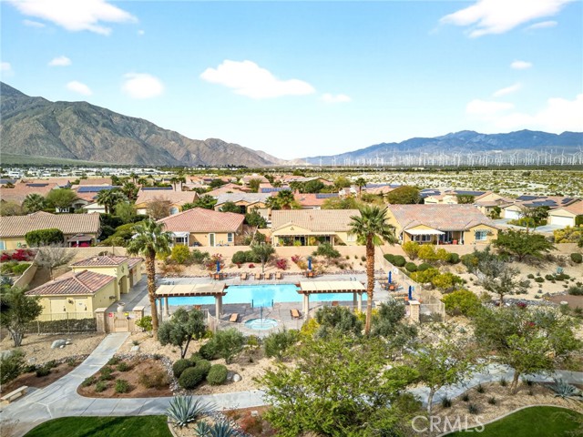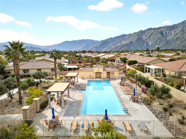 Welcome to the prestigious Four Seasons gated 55+ community in beautiful Palm Springs. This stunning 2,288 sq. ft. single-story home offers 3 bedrooms and 2 bathrooms with an open, airy floor plan and is ideally situated on a quiet cul-de-sac. The home features extensive 18” ceramic tile flooring and 9’ ceilings, creating a bright and spacious feel throughout. The gourmet kitchen showcases granite countertops, abundant cabinetry, a large center island, and a sunny breakfast area with beautiful mountain views. The formal dining room and expansive living room are perfect for entertaining and family gatherings. The spacious primary suite includes a huge walk-in closet and a luxurious en-suite bathroom with dual vanities, a relaxing jetted tub, and a step-in shower. An indoor laundry room with a utility sink provides direct access to the 2-car garage. Step outside to your private backyard retreat featuring low-maintenance desert landscaping, a concrete patio with an Alumawood patio cover, mature shrubbery, and fruit trees; recently redesigned with natural desert elements for both beauty and ease of care. Additional highlights include vinyl window blinds throughout and five ceiling fans. Residents of Four Seasons enjoy resort-style amenities at “The Lodge,” including a clubhouse ballroom, fitness and aerobics studios, game room, library, swimming pools, spas, tennis and pickleball courts, BBQ pavilion, scenic walking trails, and a full calendar of social events. HOA includes Frontier fiber internet. Located just minutes from downtown Palm Springs, fine dining, designer shopping, casinos, entertainment, and medical facilities—experience the ultimate Palm Springs lifestyle where luxury and convenience come together.