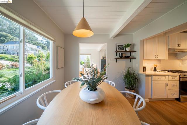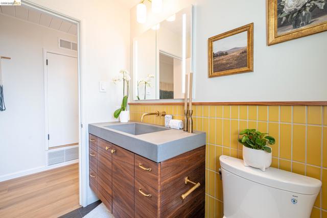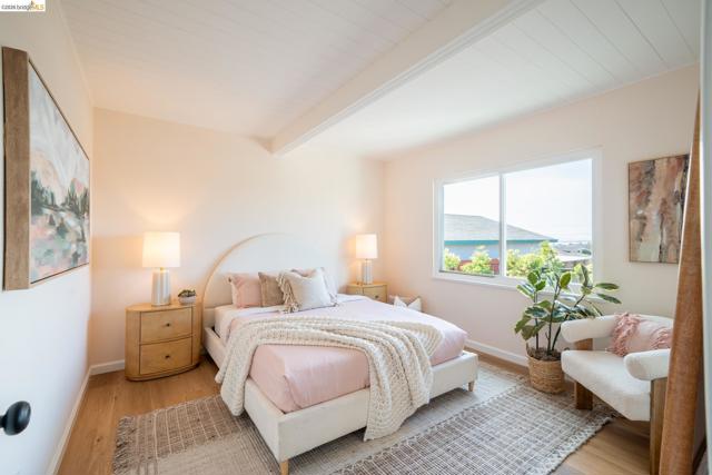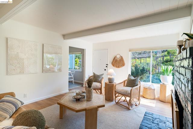 Perched above it all in El Cerrito, this level-in, mid-century gem blends clean design with modern upgrades—and delivers the kind of views that make you pause. From the primary suite’s private deck, take in sweeping vistas of SF, the Golden Gate Bridge, and Mt. Tam, an ever-changing backdrop of fog, light, and sky. This thoughtfully updated 2-bedroom, 2-bath home honors its architectural roots while embracing elevated finishes. The bathrooms feature artisan fireclay tile, sculptural concrete sinks, and warm brass fixtures that feel both timeless and current. Clean lines and curated materials create a calm, design-forward aesthetic throughout. Comfort meets efficiency with a heat pump system and an EV car charger—smart upgrades for modern Bay Area living. A wood-burning fireplace anchors the living space, inviting cozy evenings and intimate gatherings. The large garage offers exceptional flexibility—ideal for a home gym, studio, workshop, or future expansion. Outside, a low-water landscaped yard provides beauty without the maintenance, while the deck off the primary becomes your daily sanctuary—morning coffee with the Bridge, sunset wine with Mt. Tam. Located just moments from parks, local schools, and convenient shopping, this home offers both retreat and accessibility. Views: Downtown