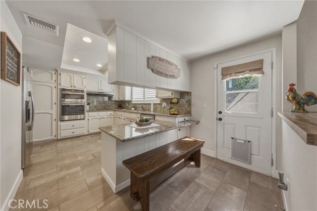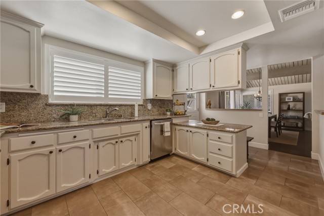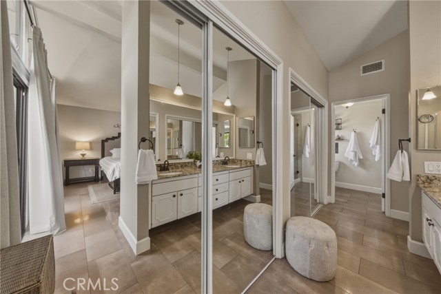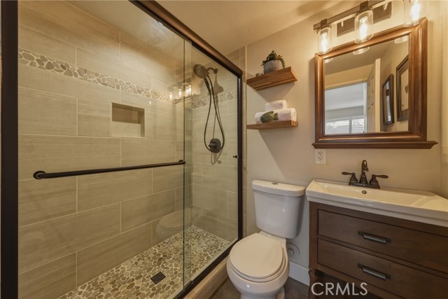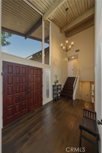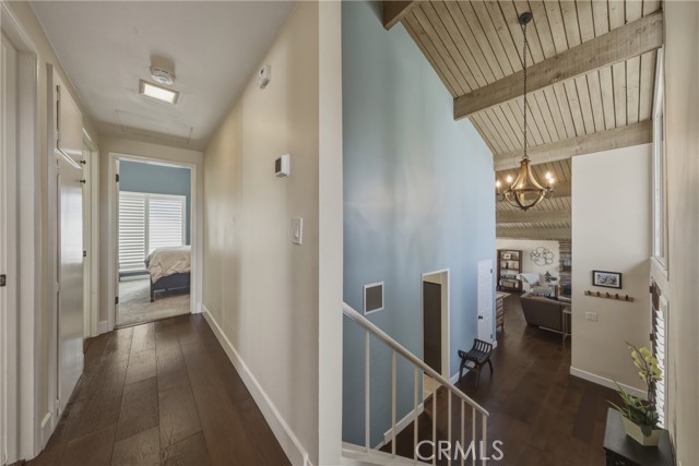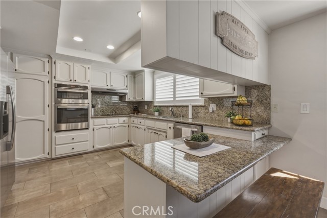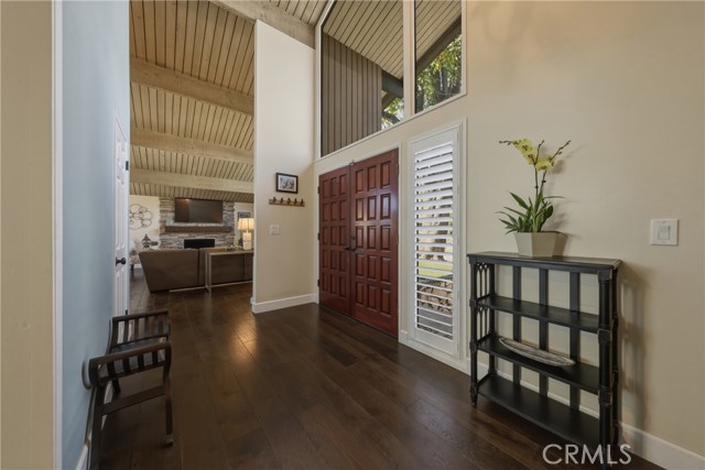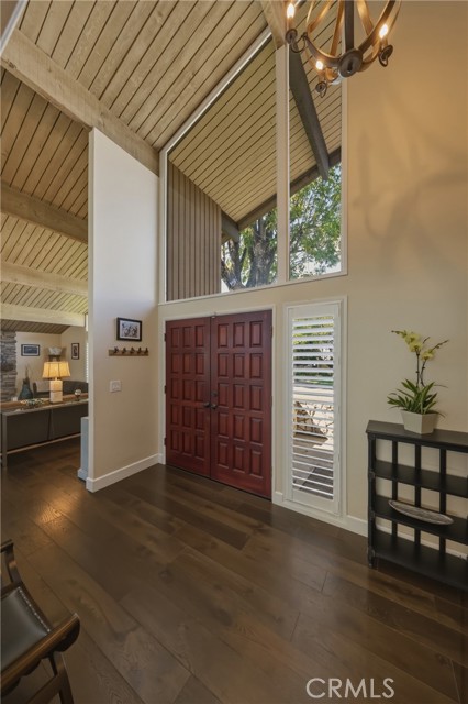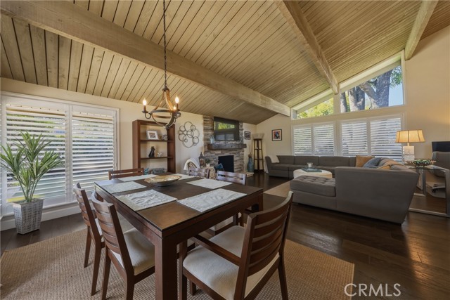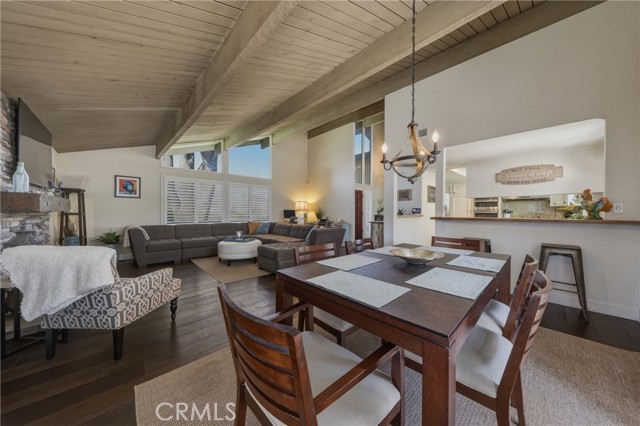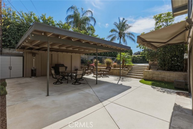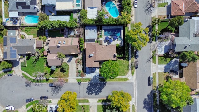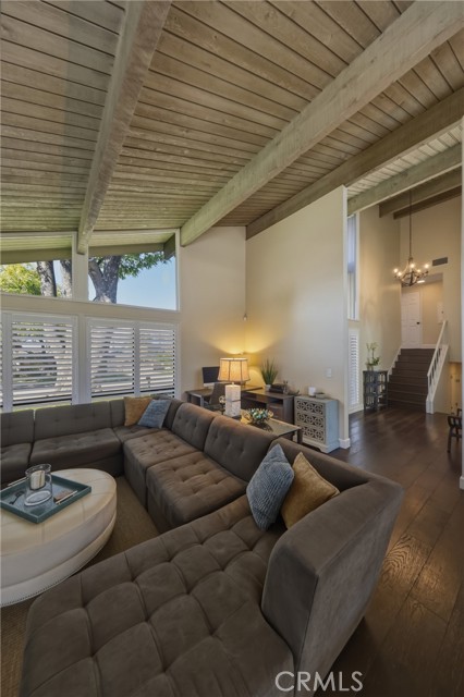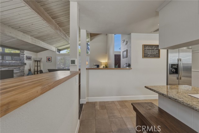 Stunning mid century modern home on a quiet cul de sac in highly desirable South Redlands. Situated on a generous 9,020 square foot lot, this 4 bedroom, 3 full bath residence offers 2,713 square feet of thoughtfully designed living space with sweeping mountain views and abundant natural light. From the moment you arrive, the mature tree lined street and curb appeal set the tone. Inside, dramatic beamed and cathedral ceilings, expansive picture windows, and an open floorplan create a bright, inviting atmosphere. The main level features a grand living room with a striking rock fireplace, a large foyer framed by oversized windows, and direct access to your backyard oasis. The kitchen offers granite counters, generous cabinetry, breakfast bar seating next to a convenient door leading to the pool and outdoor entertaining area. Upstairs you will find three spacious bedrooms, including a primary suite with private sitting balcony, two closets, and an en suite bath with dual sinks, soaking tub, and separate shower. The additional bedrooms are light filled and generously sized. A laundry chute adds charm and functionality. The lower level offers exceptional flexibility with a private oversized bedroom ideal as a second primary suite or guest quarters. It includes a large closet, kitchenette with cabinetry, full bathroom, and a private entrance to the covered patio area and backyard entertainment space, perfect for multi generational living or extended stays. The backyard was reimagined with a beautifully designed pool built in 2018, surrounded by lush landscaping and ample patio space. A shallow lounging area allows for umbrella seating, creating a resort style setting ideal for relaxing or entertaining. Additional highlights include central heat and air, rich wood flooring, tile and carpet, open beam ceilings, multiple living areas, in garage laundry with gas hookups, attached two car garage, and possible RV parking. Located minutes from downtown Redlands near shopping, dining, grocery stores, the University of Redlands, Prospect Park, A.K. Smiley Public Library, scenic trails, and the seasonal charm of Cajon Street festivities. Easy freeway access adds commuter convenience. A true South Redlands gem blending architectural character, comfort, and resort style living.
