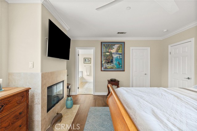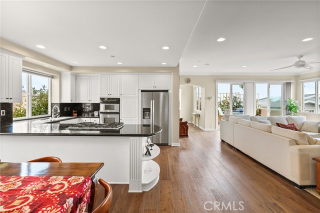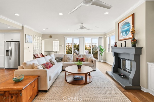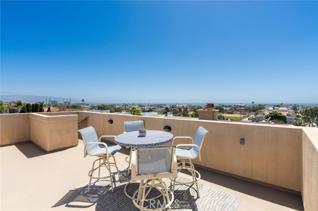 Welcome to this gorgeous 3 bedroom, 2 ½ bathroom townhome with 3 outdoor decks located in the heart of Hermosa Beach. The upstairs living area features a spacious open floor plan with ocean views, cozy fireplace, hard wood flooring, a spacious living room, dining area. kitchen and guest bathroom. The kitchen has granite counter tops, stainless steel appliances, double ovens, cook top and peninsula with countertop seating. Enjoy the ocean breezes from the living room that leads to one of the ocean view decks perfect for entertaining and outdoor dining. From this level a staircase leads to a private rooftop deck with stunning panoramic views. On the entry level you will find 2 spacious bedrooms with ample closet space and the primary bedroom. The primary bedroom has two walk-in closets, private balcony, fireplace and a large ensuite bathroom with a double vanity. All the bedrooms feature hardwood flooring. The lower level offers flexibility with an additional room for a home office, gym, or playroom. On this level you will find a laundry room and storage closet and direct access to the oversized 2 car garage with plenty of room for additional storage. This back unit townhome offers an additional off-street driveway parking spot . Conveniently located and just a short distance to the greenbelt, South Park, Hermosa Valley School, shopping, coffee shops, grocery stores, numerous downtown restaurants, the beach and bike path.