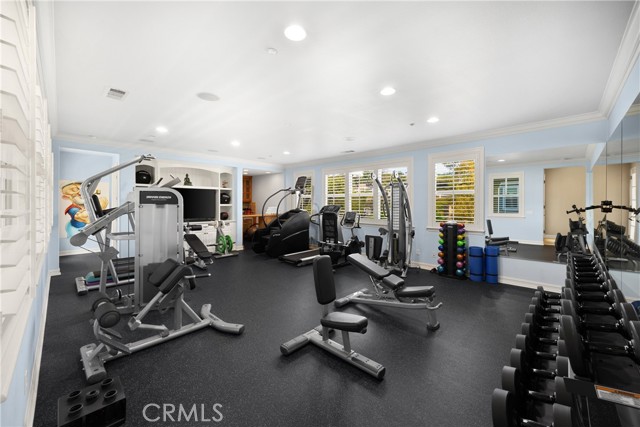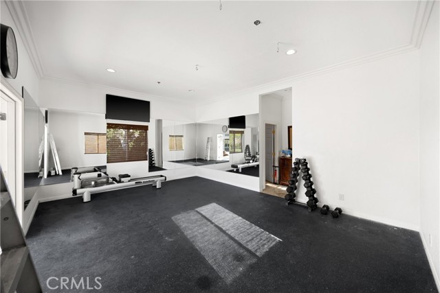 Upstairs, an impressive private gymnasium with wet bar, three-quarter bath, and private deck offers direct backyard access.