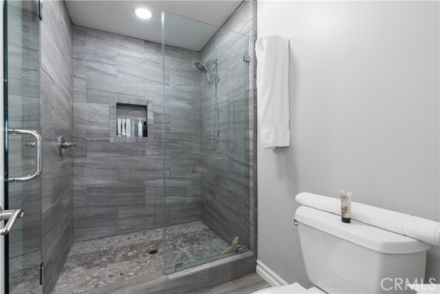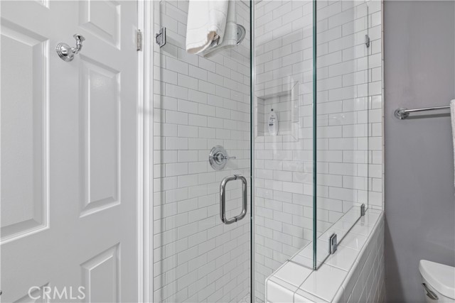 As you step inside, you’ll immediately notice the thoughtful custom upgrades that set this unit apart. The entire first floor features engineered wood flooring, and the downstairs bathroom is elegantly finished with a step-in shower, subway tile and a glass enclosure. The vanity boasts a quartz countertop blending function and style seamlessly.