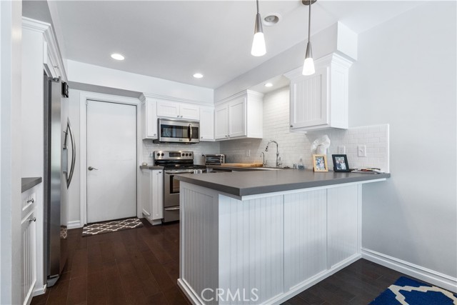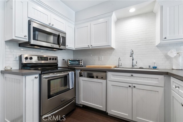 The kitchen is a chef’s dream, featuring beadboard cabinets, quartz countertops, and a deep ceramic Kohler sink. The suite of stainless steel appliances adds modern flair, while the custom trim, baseboards, and railings showcase impeccable attention to detail.