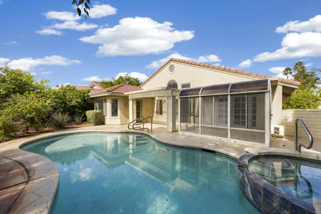 Live the golf-course lifestyle in the exclusive Avondale Golf Club, one of Palm Desert's most established private, guard-gated communities known for its championship 18-hole course, vibrant social calendar, dining, tennis, and timeless desert charm. This spacious 3-bed, 2-bath residence offers nearly 2,400 sq ft on a premium south-facing golf course lot with expansive fairway views and abundant natural light throughout. The flowing layout includes a sun room off the primary suite, ideal for a sitting area, office, or private retreat overlooking the greens. Outdoors, enjoy a pool and spa framed by mature landscaping and citrus trees, creating a serene desert setting with endless potential to design your own custom paradise. Whether you envision a refined refresh or a bold transformation, the setting and location provide an exceptional foundation. This trustee sale is an opportunity to secure a prime golf course property within one of Palm Desert's most sought-after private communities.