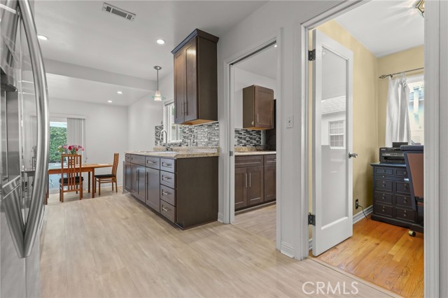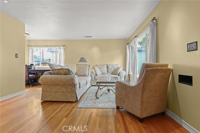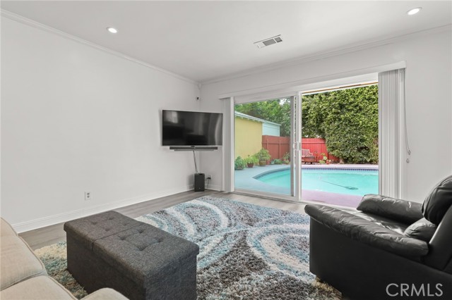 Welcome to this charming 3 bedroom, 2 bath pool home ideally situated in a desirable Magnolia Park neighborhood. Picturesque tree-lined street close to top rated Burbank schools, Verdugo Park, shopping, dining, and many major studios. Step in to the entry and lovely living room with beautiful wood floors, charming adjacent dining area leading into the nicely updated kitchen. Stainless appliances, Laminate Counters, there's a separate laundry room off the kitchen and a breakfast area looking out to the patio and sparkling pool. Large 3rd bedroom (being used as a Family Room) has no closet but allows for flexible living spaces and different needs for the new owners needs. Some upgrades include vinyl windows & sliding patio doors through out home and mostly copper plumbing. Lovely private pool and patio areas are ideal for summer fun and year-round enjoyment. Detached garage (ADU possible?) and gated driveway provide ample off street parking for several cars if needed. This is a super clean well cared for home with many upgrades and charm, all in a wonderful central location. Welcome Home!