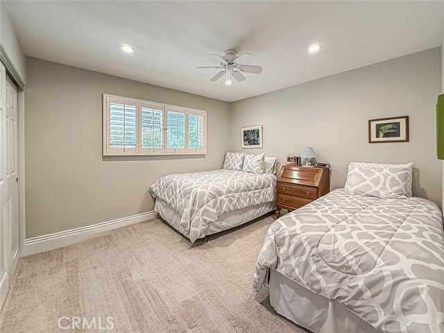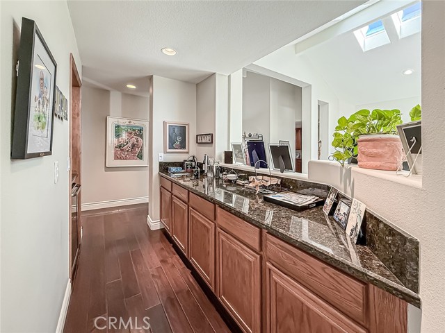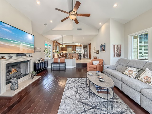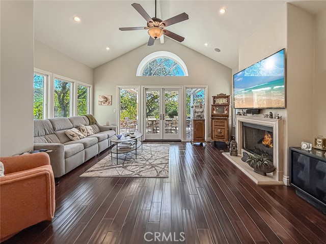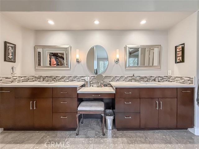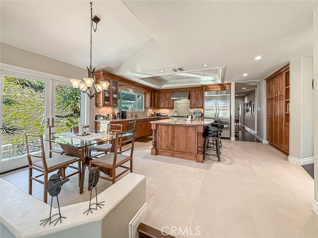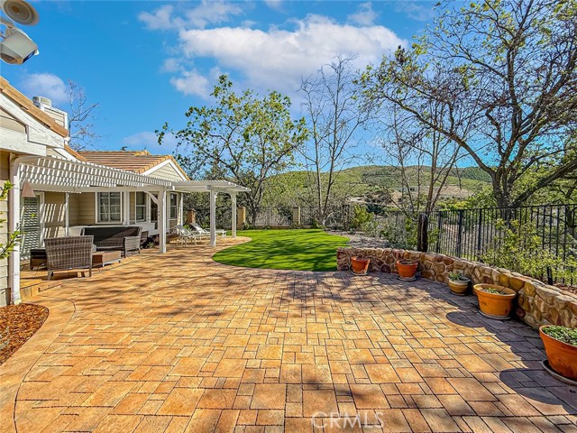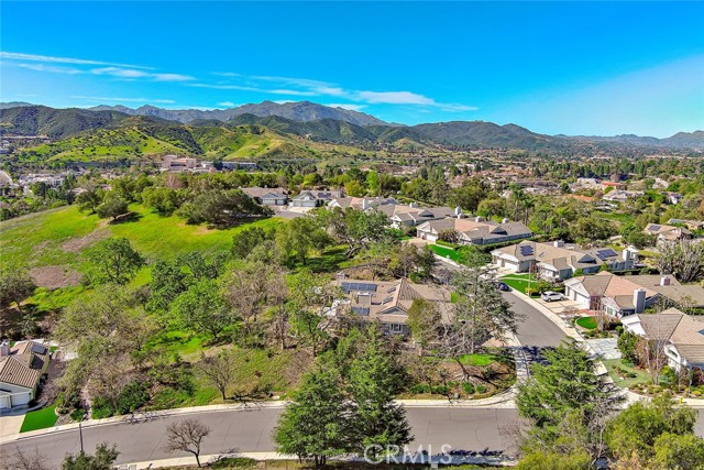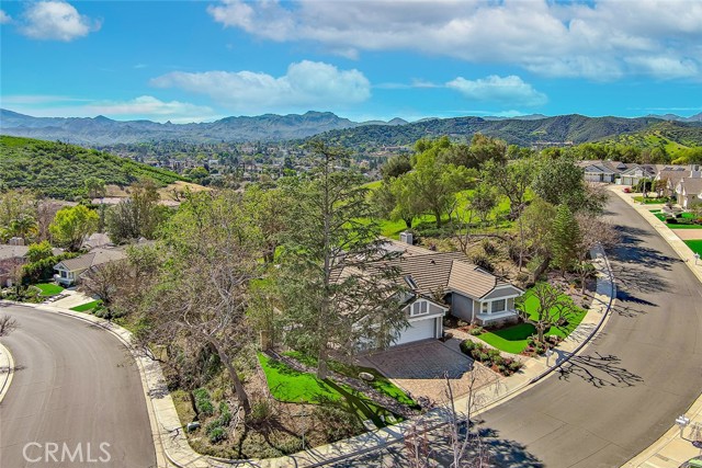 This gorgeous, highly sought after, ranch home embodies what Thousand Oaks living is all about. Upon entering, the peaceful backdrop of tree lined rolling hills greets you immediately. There is no escaping the beauty of nature from any room in this home. The many updated windows in every living area provide endless views of mature trees and greenery. The high ceilings allow for tons of natural light and add to the feeling of being transported into the countryside. With over 3200 sq ft, this single-story home offers four bedrooms and 4 bathrooms. The layout is ideal with the primary located on one side of the home and the other three rooms on the other. One bedroom is currently being used as an office with solid built-in desks providing functionality. Designed with a seamless flow for daily living, the floorplan offers a renovated kitchen with an eating area that opens to the family room and directly to the outdoor area which is professionally landscaped and equipped with tasteful pavers, a built-in BBQ, and covered patios. There is also a formal dining room, living room, and bar area, which all overlook the outdoor scenery and lend the home to effortless entertaining. The primary bedroom is a true escape designed with detail in mind. The large room has a picture window view of the backyard, the closet has been enlarged and custom fitted for optimal storage and function, and the jetted tub and double sink with a vanity built in offer spa-like luxury. The large laundry room leads to the 3-car garage. One bay has been remodeled with added storage and a large tool bench. On the other side of the home, you will find three other bedrooms. One of those secondary bedrooms has a large en-suite bath which could be a great option for guests, in-laws, or children. This home offers all renovated bathrooms, ample cabinets throughout the home, custom shutters, leased solar that keeps electrical bills very low, a security system in place, surround sound in the family room, wiring for an EV charger, and 3 Ring cameras. The real star of the show is the yard and the views from it. Perched on the hill, the view goes on for miles, nature is all around you, and you cannot miss the sheer calm that this home provides. The HOA includes a basketball/sport court, a tennis court and walking trails. You do not want to miss it!!
