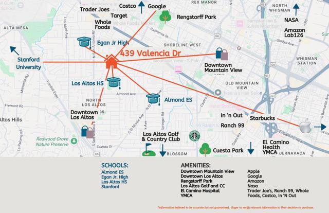 If location, community, and schools are important to you, do not miss this move-in ready 4 bedroom North Los Altos home - near top schools and vibrant downtown. Separate living and family rooms provide space to relax, host, or work from home. The great room is comprised of a family room, with formal dining area, adjacent to the remodeled kitchen, which boasts custom cabinets, high-end appliances (e.g. Viking Professional 6 burner gas range / oven combo), ample granite counter space, and a daily dining area. Thoughtfully remodeled bathrooms, air conditioning, and wood flooring complete this house. The big backyard is accessed from the family and living rooms to enable the al fresco lifestyle. The large verdant yard features an expansive lawn for play or entertaining, a large patio, and side yard for storage. This home is embedded in a friendly neighborhood close to Almond ES, Egan JH, Los Altos HS, Bullis Charter School, Pinewood, St Simon, and St Francis. The Downtown Los Altos Village features the new Hillview Community Center, the main library, sports fields, and popular restaurants and shops. Downtown Los Altos is also the home of the Holiday Festival of Lights, Pet Parades, and summer concerts, too!
