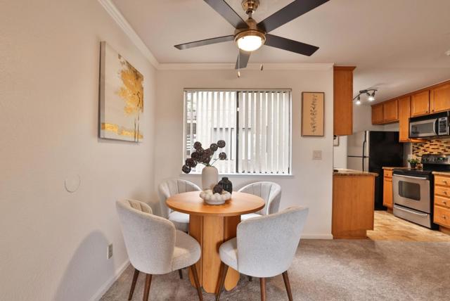 Welcome to 2250 Monroe Street #244, a light-filled second-story one-bedroom condo in a well-maintained gated community in a central and convenient location. This inviting home features a spacious living room with crown molding and plush carpeting that opens to a private balcony with an extra storage closet overlooking tranquil landscaping. The open dining area flows into the updated kitchen, complete with warm wood cabinetry, granite countertops, full tile backsplash, and stainless steel appliances. The generous bedroom offers great natural light and ample closet space w organizers, while the bathroom includes granite counters and a tiled shower over tub. An in-unit stacked washer and dryer provides added convenience. This community features a large community pool, and another hot tub/spa close to the unit, BBQ area, and community gym. Ideally located near major tech campuses, shopping, dining, and easy access to Highways 280, 880, and San Tomas Expressway, this home offers comfortable living in a prime Silicon Valley location.