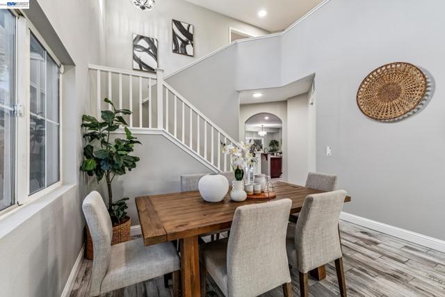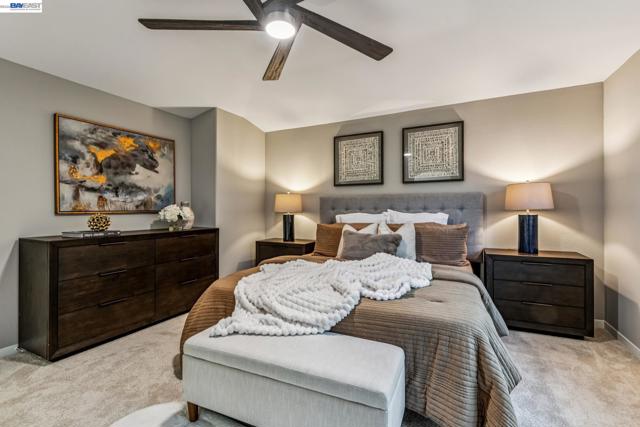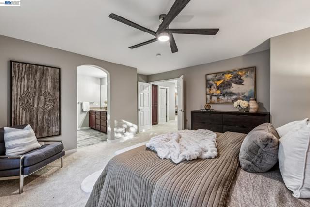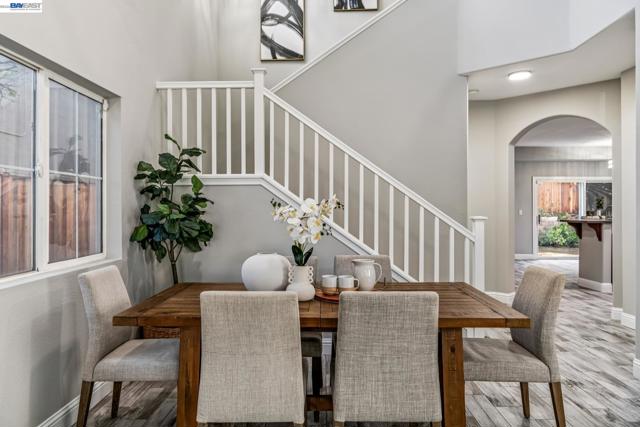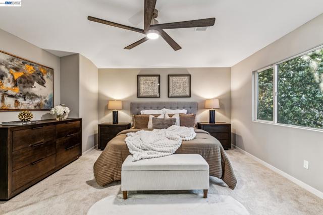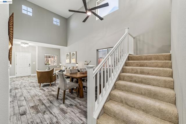 Tucked away in a quiet & court location within Edgewood community, this beautiful home welcomes you w/soaring vaulted ceilings & great lighting. The formal living & dining areas are particularly elegant, featuring tall ceilings that add a sense of grandeur. The heart of the home is an open-concept layout where the family room, anchored by a cozy fireplace, flows effortlessly into the kitchen & breakfast nook. The kitchen offers warm cabinetry, solid countertops & a gas stove. This level also includes half bath, a convenient indoor laundry room, additional storage & access to the attached 2 car garage. Upstairs, the spacious primary suite serves as a private sanctuary, complete with a double-sink vanity, a large soaking tub, a separate shower & a walk-in closet. 3 additional bedrooms & a full bathroom complete the upper level, providing plenty of room for family, guests, or a home office. Step outside, a raised deck overlooks a lushly landscaped yard that remains low-maintenance, perfect for weekend gatherings. This home is also packed with high-value upgrades: new paint, carpet, fully paid-off electric solar system, a tankless water heater, HVAC, fence & light fixtures. Located just 5 minutes from parks, shopping, the ACE train & all within the Jefferson School District.
