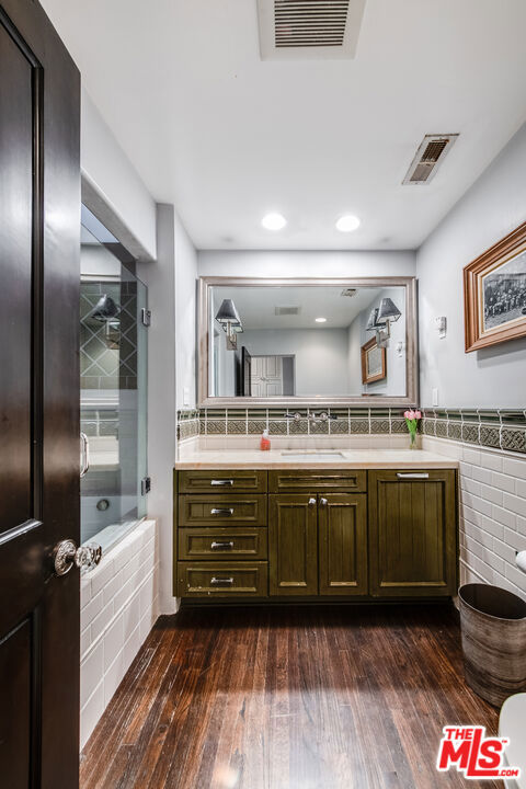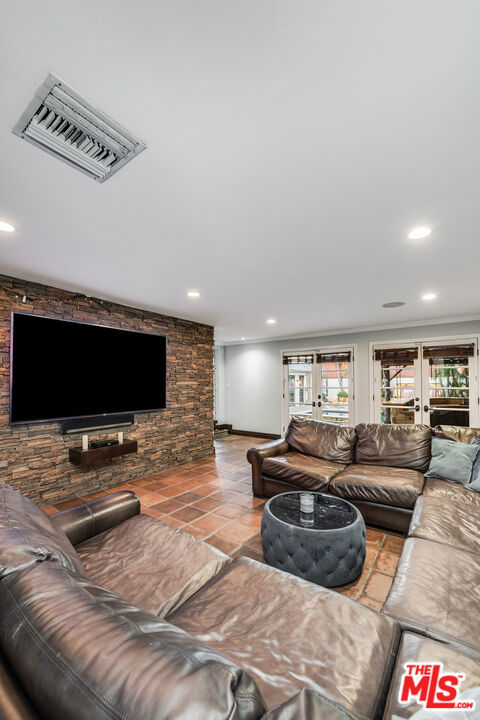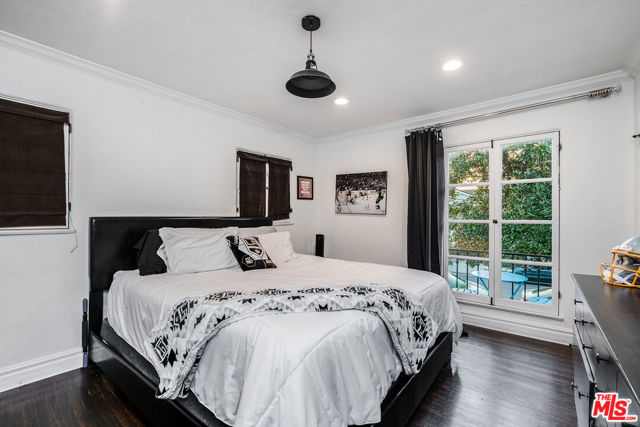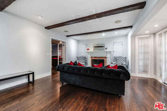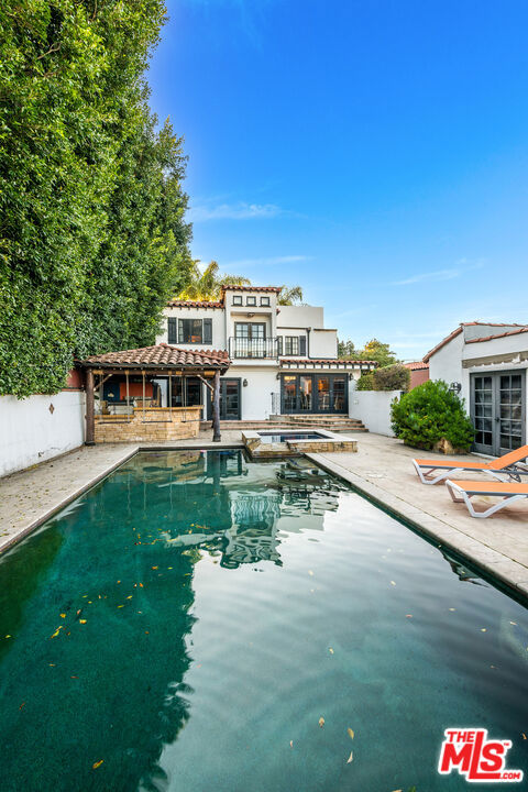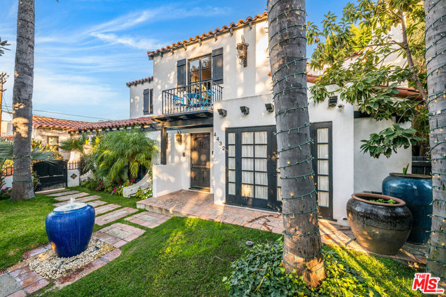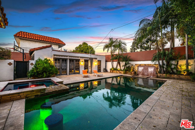 Romantic Old World Spanish charmer nestled in the heart of Toluca Lake, a coveted enclave known for its privacy and celebrity appeal. This beautifully maintained 3-bedroom, 2.5-bath residence showcases classic Spanish Revival architecture with wood shutters, tile roof, wrought iron detailing, and authentic lantern lighting. Inside, timeless character blends seamlessly with modern comfort, featuring hardwood floors, an inviting fireplace, and exposed ceiling beams that create a warm, elegant ambiance. Graceful arched passageways connect the spacious living room to the formal dining room, ideal for refined entertaining. The thoughtfully remodeled gourmet kitchen is appointed with Sub-Zero, Wolf, and Viking appliances, granite countertops, butcher block accents, and custom paver flooring, while a stylish powder room is enhanced with colorful Talavera tile and a hammered metal basin. An expansive media room with Saltillo tile floors and custom built-ins offers a relaxed yet sophisticated gathering space. The primary suite serves as a private retreat with exposed beams, a balcony, and a spa-inspired bath featuring Walker Zanger tile, custom vanity tops, a jetted tub, separate shower, and Kallista fixtures. Additional highlights include surround sound throughout the home and backyard, custom woodwork, upgraded electrical and plumbing systems, and dual HVAC. A detached guesthouse provides flexible space for guests, office, or creative studio use. The resort-style backyard is designed for exceptional entertaining, complete with an outdoor kitchen with swing seating beneath a palapa, a Pebble Tec pool and spa, multiple lounging areas, and lush landscaping that creates a private, tranquil escape just moments from the shops and dining of Toluca Lake Village.