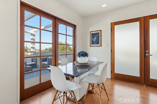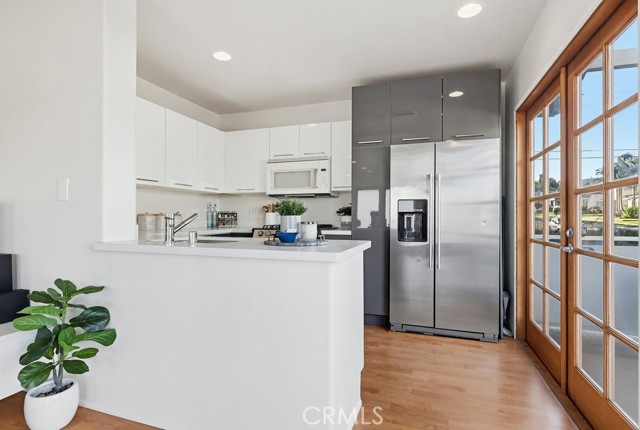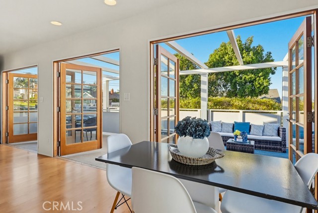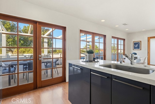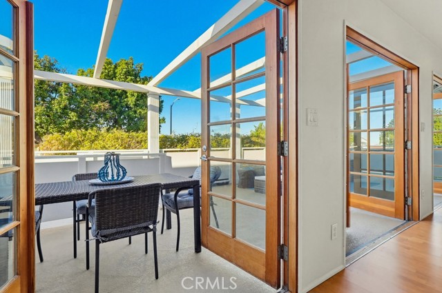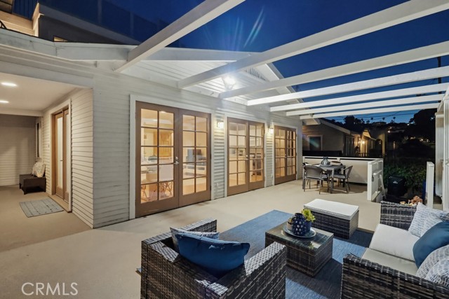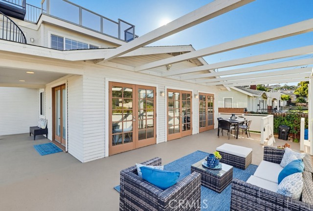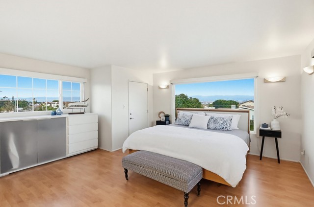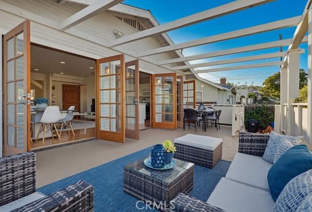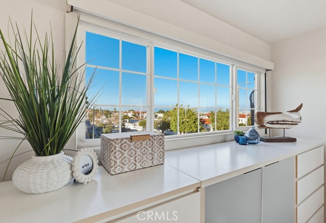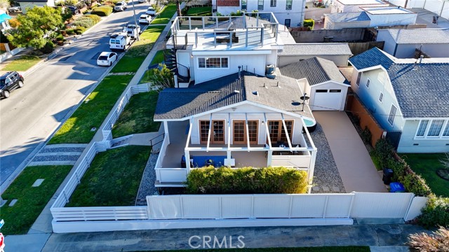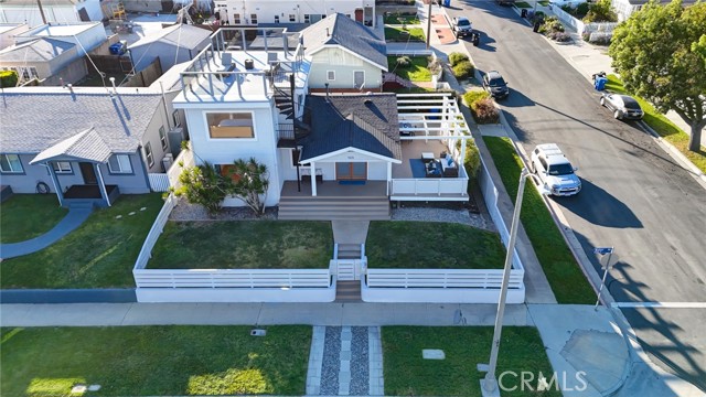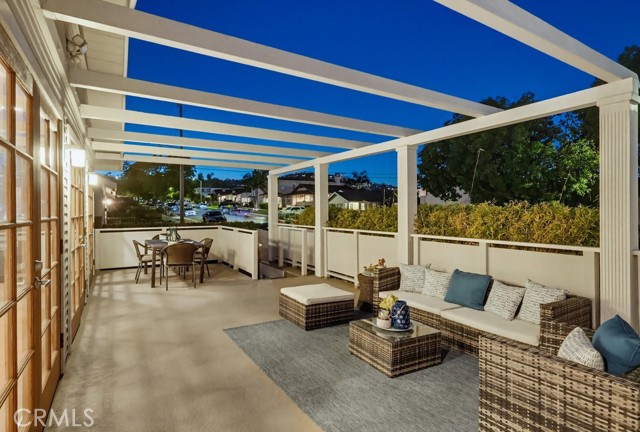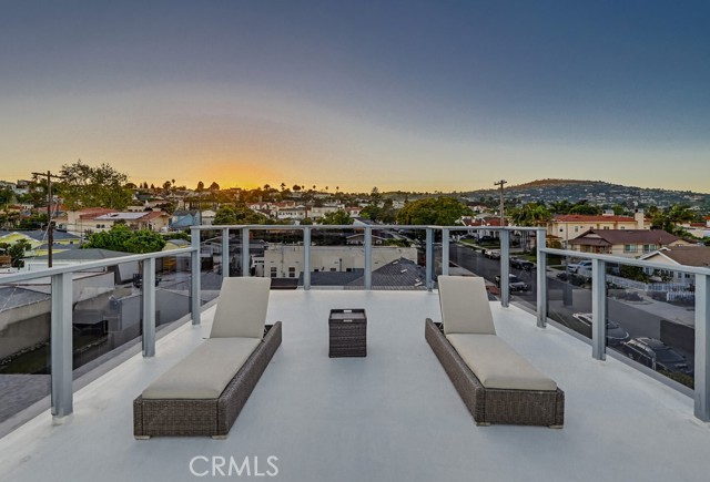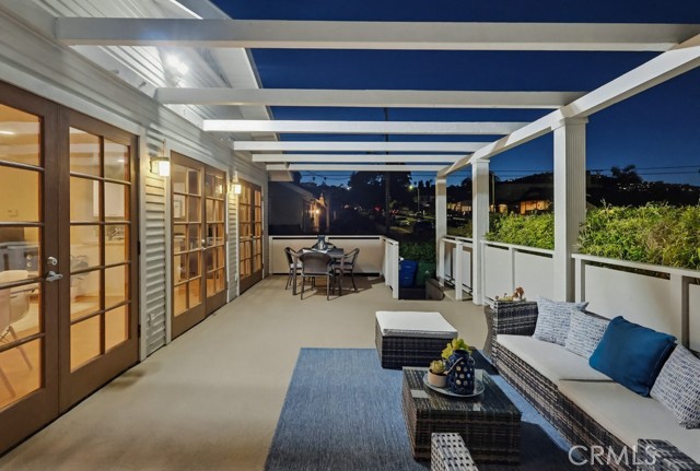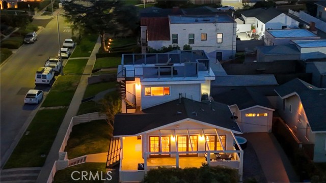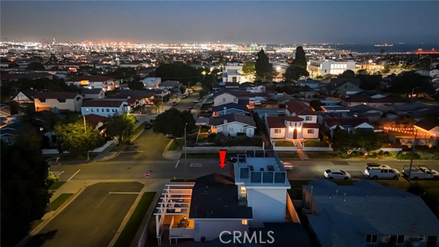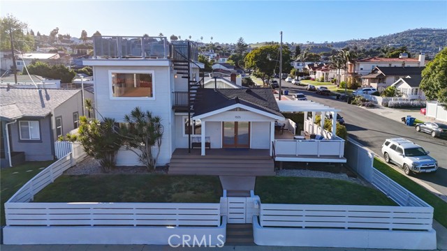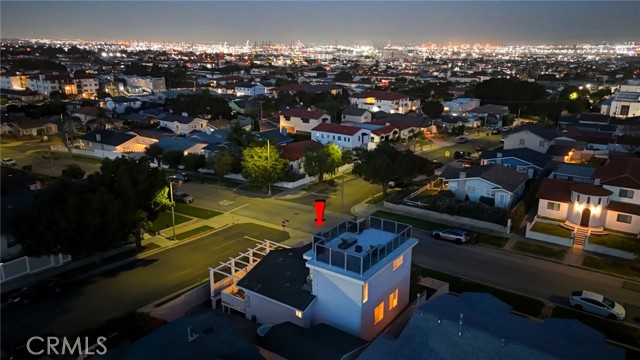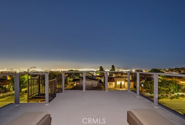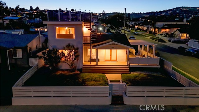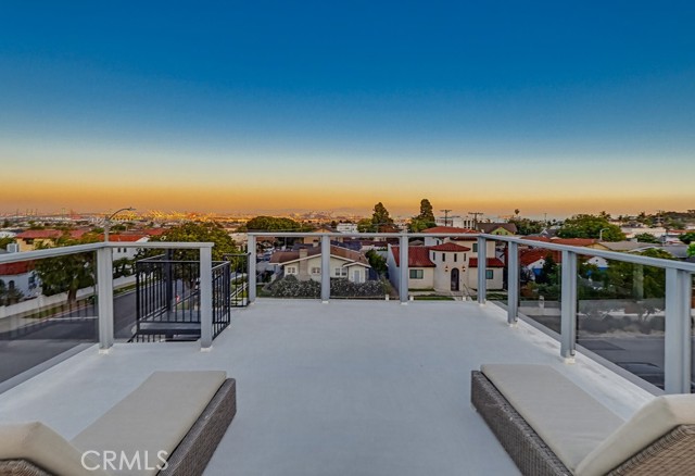 Old world charm meets refined modern luxury in this exquisitely updated and re-imagined 1920s Craftsman, prominently positioned on an elevated corner lot in the highly desirable Vista Del Oro neighborhood. With commanding curb appeal, a fully fenced yard that gracefully wraps around the property, and a welcoming covered front porch perfect for quiet mornings or sunset evenings, this home offers warmth and elegance from the moment you arrive. Inside, timeless architecture blends seamlessly with sophisticated contemporary design. Light wood laminate floors flow throughout, complemented by recessed lighting, smooth walls and ceilings, and bull-nose corners that create a clean, polished aesthetic. The designer kitchen is both striking and functional, featuring high-gloss white and gray cabinetry, sleek quartz countertops, and a thoughtfully designed layout ideal for both casual meals and elevated entertaining. The sun-drenched living and dining areas are framed by three sets of French doors that open effortlessly to a spacious deck, creating a seamless indoor-outdoor experience that feels both expansive and inviting. The lower level offers exceptional versatility with an office area, guest bedroom, a beautifully remodeled full bath finished with quality materials and a laundry closet. Upstairs, the primary suite is a true sanctuary, showcasing captivating harbor, mountain, and sparkling city light views. A generous walk-in closet and spa-inspired bath elevate the experience with a body massage shower and jacuzzi tub. Electronic blackout shades provide ultimate comfort and privacy. A dramatic spiral staircase leads to the rooftop deck with sleek glass railing, where breathtaking 360-degree views stretch from the hills of Palos Verdes to the Pacific Ocean, offering an unforgettable backdrop for relaxing under the stars. Designed for comfort, efficiency, and peace of mind, the home includes central heating and air conditioning, a tankless water heater, copper plumbing, 200-amp electrical service, dual-pane windows, a retrofitted foundation and a cozy "Soft Spa". Gated driveway parking and a one-car garage with a dedicated work area add both convenience and functionality. As an added bonus, nearly all furnishings and appliances are included (excluding staging items), presenting a rare opportunity to own a truly turnkey residence or create a high-end short-term rental in one of the area’s most sought-after neighborhoods.