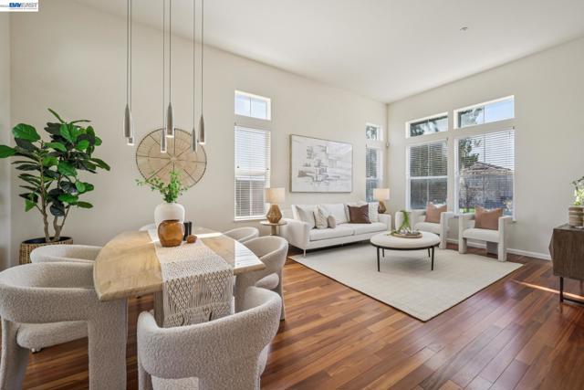 Tucked away in the sought-after Bailey Ranch neighborhood, this spacious 5 bed, 3 bath home offers 3,243 SF of thoughtfully designed living space on a generous 9,021 SF flat lot backing to breathtaking, panoramic views of the Garin Park canyon. The main level showcases soaring high ceilings and features a desirable downstairs bed and bath, ideal for guests, along with a formal living room, elegant dining room, and a warm, welcoming family room. The kitchen opens seamlessly to the backyard, creating an effortless indoor-outdoor flow for everyday living and entertaining. A permitted 141 SF sunroom adds versatile bonus space filled with natural light; perfect for a home office, playroom, or peaceful retreat. Upstairs, you’ll find 3 additional beds, a full bath, and a convenient laundry room. The expansive primary suite is a true sanctuary, showcasing sweeping panoramic canyon views of Garin Park. The primary bed offers room to unwind, while the en-suite bath features a jetted tub for a spa-like experience at home. Step outside to your private backyard oasis. The flat lot backs directly to the canyon, providing privacy and a stunning natural backdrop. Enjoy gatherings on the composite deck or relax beside the tranquil koi pond while taking in the spectacular open-space views.