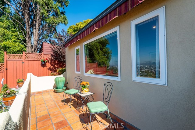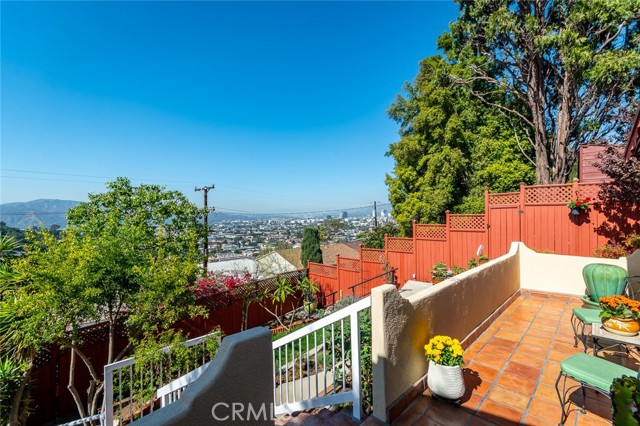 Rare Double Views, Expansive east and west views, Elegant 1920s Spanish Revival in Coveted Adams Hill - - - Perched high above the street in Glendale’s Adams Hill neighborhood, this 1920s Spanish Revival home captures breathtaking views from nearly every room — from sunrise over the hills to the east, to glowing sunsets to the west. Its rare double-view orientation fills the interiors with natural light throughout the day, while timeless architectural details harmonize with thoughtful, high-quality updates. The home exudes pride of ownership, where every surface has been carefully renewed with taste and craftsmanship. A charming living room with a classic barrel ceiling, handsome fireplace, and sweeping western views anchors the main living space. The spacious floor plan includes both a formal dining room overlooking the hills and a cheerful breakfast nook with morning light and eastern vistas. Even the kitchen sink enjoys a stunning view. The primary suite offers an updated ensuite bath, while the office or den — counted as the fourth bedroom — impresses with high ceilings, skylights, and an elegant eyebrow window. Outdoor living is equally enchanting: Saltillo-tiled patios complement lush, meticulously maintained gardens. Enjoy two distinct entertaining terraces — a tranquil east-facing patio perfect for morning coffee and a west-facing terrace ideal for unwinding at sunset. Another large patio rests gracefully above the detached two-car garage, offering yet another serene retreat. Practical upgrades include copper plumbing, central heat and air, and dual-pane windows. Additional storage spaces adjacent to the crawlspace provide the perfect opportunity for a wine cellar or easily accessible storage. All of this in a peaceful, historic enclave just 8 miles from Downtown Los Angeles, 10 miles from Burbank, and 7 miles from Pasadena — a central location that offers convenience without sacrificing charm or tranquility. ***Street address shows 1408 Corona Dr, mailing address is 1404 Corona Dr.***