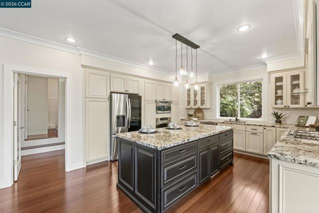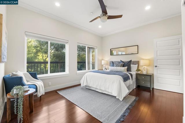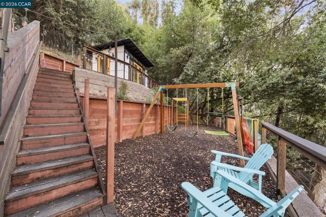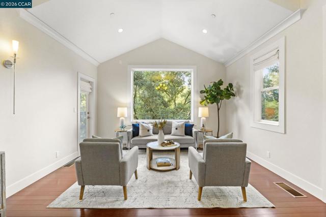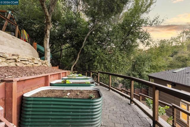 Newer construction in Montclair where quality of life matches the quality of construction! Completed in 2013 with sweeping views of the lush hillsides, the home still feels like new. The entry level includes a living room, guest bedroom and full bath. A grand staircase leads to an open-concept main level with family room, dining room, kitchen, office, half-bath, laundry and sunroom. Designed for ease of cooking and entertaining, the kitchen features an island, granite counters, gas stove and extensive storage/pantry options. Three more bedrooms are located on the upper level including the primary bedroom with walk-in closet and en-suite bath with soaking tub and shower. Additional features include owned solar, hardwood floors, crown molding and fresh interior paint. The home includes multiple outdoor spaces with several large patios, decks and gardening areas with raised beds. Work from home in the tranquility of the detached office overlooking the play area with swings, slide and views. The gated driveway leads to a one-car garage with EV charger and spacious storage area. A bonus basement adds space for a gym, office or more storage. Just up from Thornhill Elementary and minutes from Montclair Village and Hwy 13, the ideal mix of privacy and convenience!