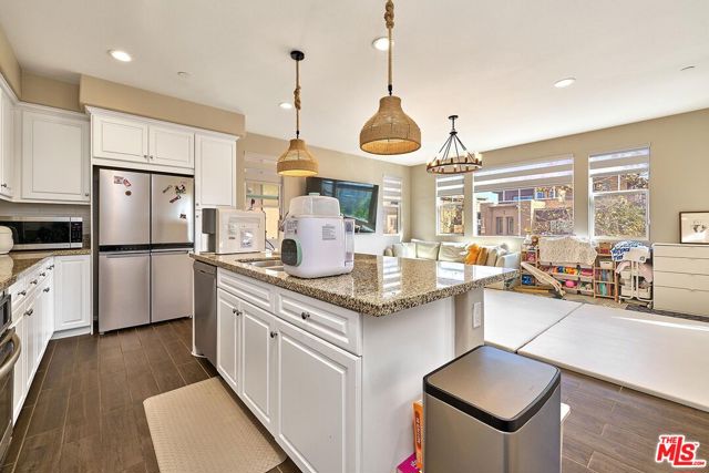 Welcome to modern elegance in the highly coveted Day Creek Square community. Built in 2020, this stunning end-unit three-story townhome offers 1,745 square feet of light-filled, open-concept living with the added privacy of only one shared wall.The heart of the home is a chef-inspired kitchen featuring a massive center island, gorgeous granite countertops, an upgraded designer backsplash, and sleek cabinetry. It flows seamlessly into the spacious dining and great room areas, creating an inviting layout that is perfect for both everyday living and entertaining guests.The first and second levels feature durable tile flooring, ideal for high-traffic areas and easy maintenance, while the third floor is finished with waterproof engineered hardwood flooring, offering both comfort and a refined, elevated feel in the private living spaces. Throughout the home, these thoughtful flooring upgrades enhance both style and functionality.Upstairs, you will find three generously sized bedrooms, including a serene primary suite complete with a luxurious en-suite bathroom featuring dual sinks and ample storage.Beyond the front door, the neighborhood feels like a year-round vacation. Residents enjoy exclusive access to resort-style amenities, including a sparkling pool, spa, and BBQ lounge areas.Complete with a two-car attached garage equipped with a Tesla charger, and located just moments from award-winning schools, premier shopping, and excellent dining, this turnkey property offers the absolute best of Rancho Cucamonga living.
