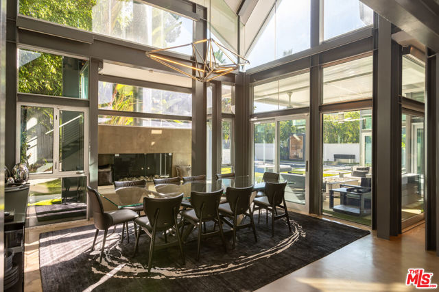 Exceptionally private architectural home crafted from steel, glass, and concretea bold statement in design, quality, and craftsmanship. Soaring ceilings, exposed commercial beams, and natural metals create a dramatic, gallery-like atmosphere, while expansive walls of glass fill the interiors with light and seamlessly connect every space to the outdoors. Polished concrete floors flow through open-concept living spaces, creating a sophisticated yet comfortable backdrop for elevated living. The chef's kitchen features top-of-the-line appliances, custom cabinetry, and a seamless connection to the grand great roomperfect for both intimate gatherings and large-scale entertaining. Every detail, from architectural lines to designer finishes, reflects precision, artistry, and thoughtful design. The luxurious primary suite offers a spa-like retreat with a freestanding soaking tub and private outdoor access, while additional bedrooms and living areas provide light-filled, expansive spaces for family and guests. Outside, professionally landscaped grounds evoke a private resort, with a sun-drenched swimmer's pool, tranquil water features, and multiple elegant dining pavilions. The outdoor spaces capture the essence of Southern California living, offering the perfect balance of grand entertaining and serene everyday enjoyment .This rare architectural residence unites visionary design, high-end craftsmanship, and seamless indoor-outdoor flow, creating a fully private sanctuary where art, luxury, and lifestyle converge in one extraordinary home.