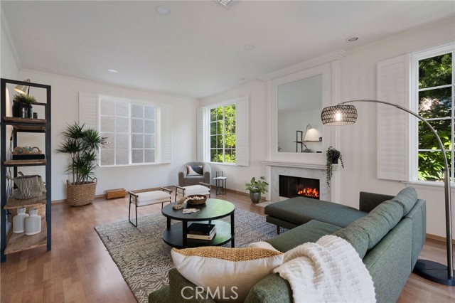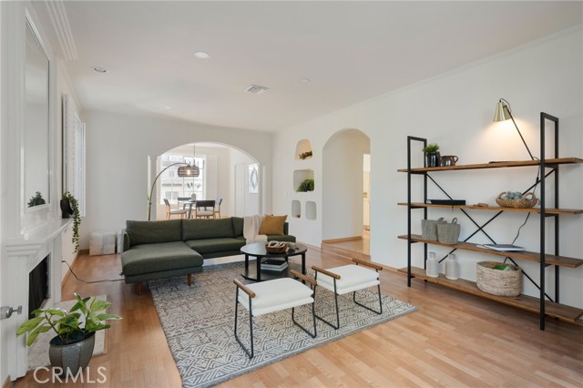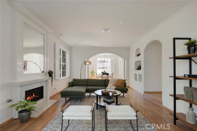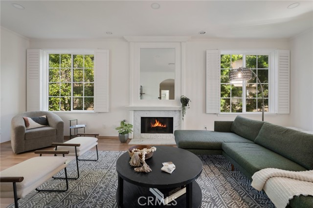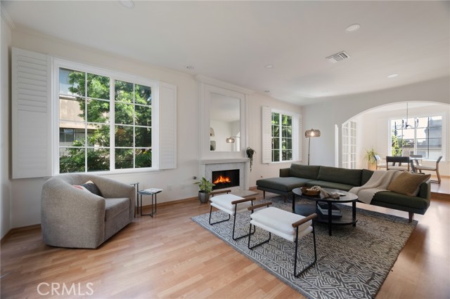 Step inside to soaring 10-foot vaulted ceilings, rich hardwood floors, and an elegant fireplace that anchors the sophisticated living room. French windows fill the home with exceptional natural light, enhancing the warmth and openness of the space. Crown moldings, recessed lighting, and custom built-ins add timeless character and thoughtful detail throughout.