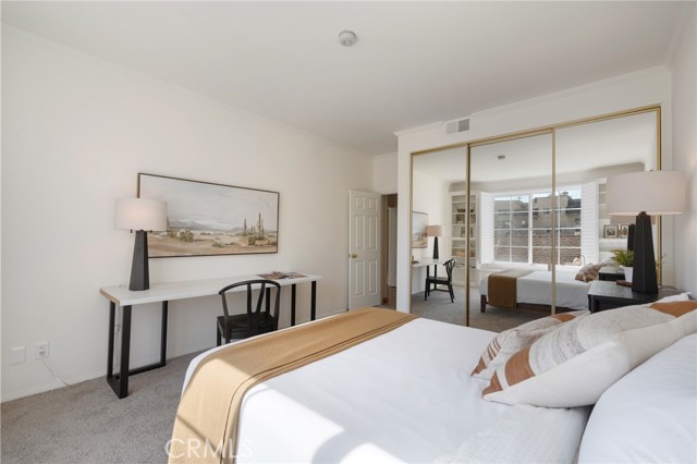 Both bedrooms are impressively proportioned, offering comfort and versatility, and are enhanced with custom built-ins that provide stylish appearance, and efficient storage solutions. The expansive primary suite is a true retreat—generously scaled to accommodate a sitting area and complemented by a large walk-in closet designed to meet all your wardrobe needs.