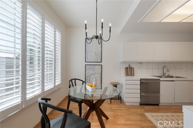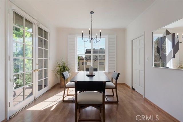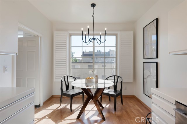 The formal dining room flows seamlessly from the kitchen to a private balcony, creating a welcoming indoor-outdoor ambiance. Designed with both functionality and connection in mind, the spacious eat-in kitchen offers abundant cabinetry, generous prep space, and ample room to gather. Whether entertaining guests or enjoying a quiet evening at home, this thoughtfully designed space balances any occasion.