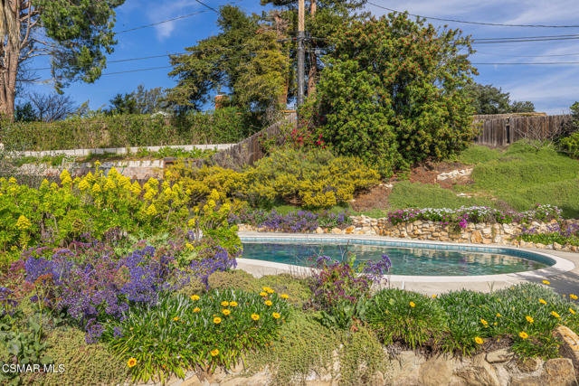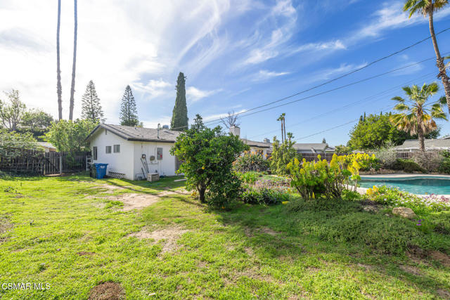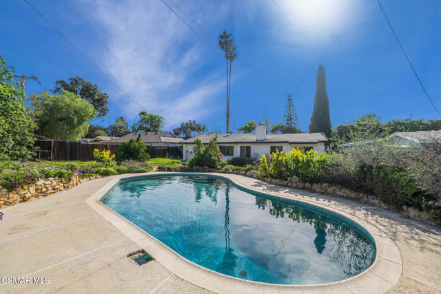 Nestled in the heart of Thousand Oaks, this charming three-bedroom, two-bathroom home invites its next owners to write a beautiful new chapter. Set on an expansive lot with a true backyard pool oasis, it's easy to imagine long summer afternoons by the water, weekend barbecues under the open sky, and laughter echoing through the yard. Lush colorful foliage paints the landscape and mature fruit trees are ripe for picking. A substantial side yard is currently untouched, ready for a potential large garden, pool house, sport court, RV parking pad, or improvement of your choice...the options are endless. This backyard is very private, serene, and truly unique!Inside the 1,561 sq. ft. home, a large great room with a cozy fireplace creates a welcoming place to gather and unwind. The kitchen features a designated breakfast nook for slow mornings, while a spacious separate dining area is ready to host family and friends. Adjacent to the dining area, a cozy living space offers flexible use as a home office or quiet reading retreat, with sliding doors that open seamlessly to the backyard patio. Lovingly cared for and rich with character, this well-loved home radiates warmth from the moment you step inside. With paid-off solar panels and endless possibilities to bring your own vision to life, there is room to grow and the opportunity to reimagine each space in your own style, creating a private retreat where everyday moments become lasting memories. Don't miss out on this unique property!