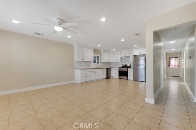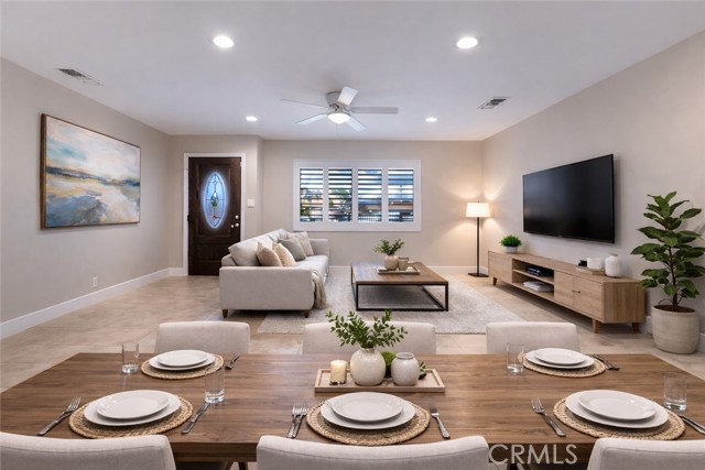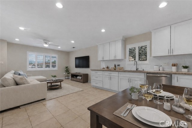Fully gated and thoughtfully modernized, this beautifully updated single-story residence offers style, security, and future potential in a well-established residential neighborhood of Canoga Park. A long, private driveway with gated entry leads to a detached 2-car garage, creating excellent opportunities for additional parking, RV or boat storage, or possible future development of the garage into an ADU or creative flex space. The curb appeal is enhanced by a decorative metal fence, verdant grass lawn, and brick accents in the walkway, planters, steps, and façade of the house. Inside, the home showcases tile flooring throughout, updated windows, interior raised panel doors, and a tankless water heater for modern efficiency. The entry opens directly into the spacious living/great room featuring plantation shutters, recessed lighting, ceiling fan, a seamless open flow to the completely redone kitchen and space and flexibility to set up a dining area. The kitchen shines with granite countertops, subway tile backsplash, new shaker cabinetry with crown molding, contemporary hardware, stainless steel appliances including a 5-burner gas range, range hood, and dishwasher, all designed for both everyday living and entertaining. Down the hall, three solar tube skylights flood the space with natural light, and a convenient laundry closet adds practicality. The generously sized primary suite features plantation shutters, a walk-in closet, sliding glass door to the backyard, and a beautifully updated en-suite ¾ bath with quartz counters and tiled enclosure. Secondary bedrooms include plantation shutters and mirrored closets, share a remodeled full hall bath, while maintaining the cohesive upgraded aesthetic throughout. The backyard offers a partially covered patio, lawn, brick planter accents, and abundant space for gatherings or future customization. Ideally located near shopping, dining, recreation, entertainment, and with easy access to Topanga Canyon for convenient commuting, this move-in ready home blends security, modernization, and long-term versatility in one compelling package.