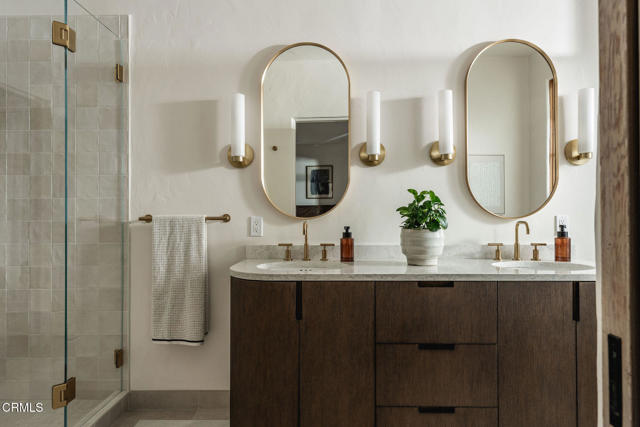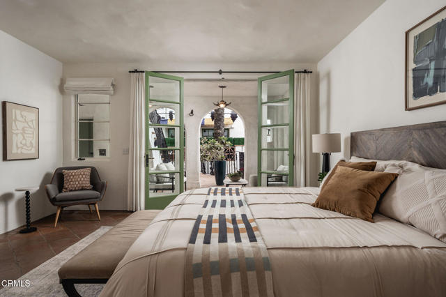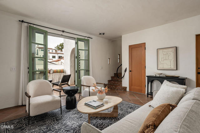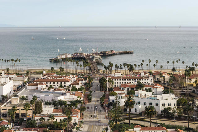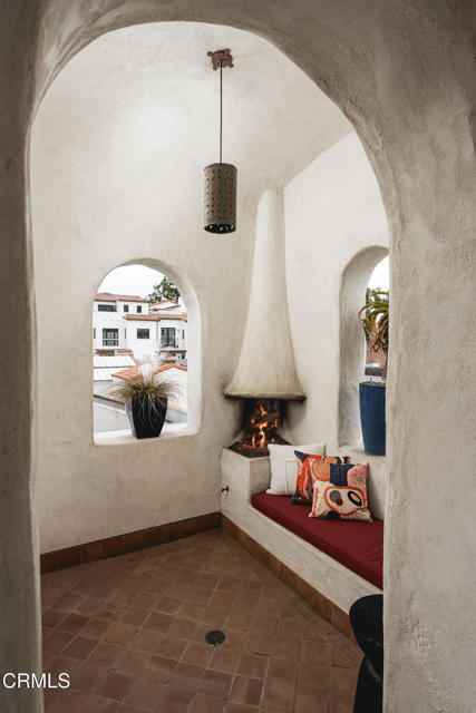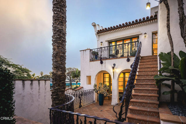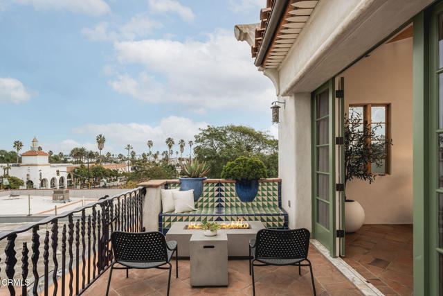 Pistachio House presents a rare mixed-use opportunity at the heart of downtown Santa Barbara, positioned at the gateway to the Funk Zone. The property includes a privately accessed 3 bedroom, 3 bathroom residence with approximately 1,700 square feet of living space, located behind a commercial building fronting State Street. The residence was designed by renowned Santa Barbara architect Jeff Shelton and commissioned and built in 2002 by the owners of the Santa Barbara Pistachio Company. Thoughtfully conceived as part of a mixed-use project, the home maintains a strong and private residential identity. Accessed via a secluded paseo, the residence reflects Shelton's imaginative interpretation of Spanish Colonial Revival architecturefeaturing white plaster walls, arched openings, handcrafted tilework, expressive wrought-iron railings, and richly saturated colors throughout doors, cabinetry, and architectural accents.Interior spaces are intimate yet dynamic, defined by sculptural forms, artisan tile surfaces, and carefully framed windows. Each living area connects to its own finished outdoor terrace, with seven terraces total, many featuring patterned tile, ironwork, and built-in seating. Upper-level terraces offer approximately 280-degree views, providing exceptional indoor-outdoor living across multiple levels.Additional features include a finished two-car garage with ample storage, dedicated work area, EV charger, exercise space, and an elevator servicing all levels, amenities rarely found in downtown Santa Barbara residences.The commercial building fronting State Street has been consistently leased by the same two long-term tenants for over 15 years, offering supplemental income. Ideally located one block from the Funk Zone, four blocks from the beach, and within walking distance of downtown dining, shopping, and cultural amenities, the Pistachio House offers a unique opportunity for owner-users or investors seeking a distinctive architectural residence paired with stable commercial income.