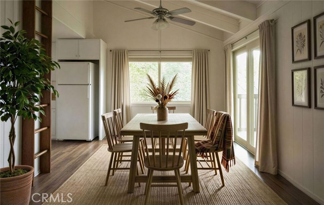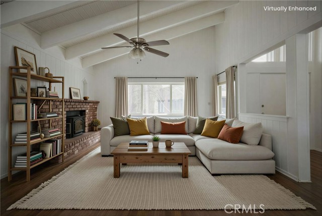 Charming Twin Peaks Retreat with Loft, Forest Views, and Multiple Living Spaces! Nestled at the end of a quiet, desirable cul-de-sac in Twin Peaks, this 3-bedroom, 2-bathroom home offers the perfect blend of mountain serenity and accessibility. With only 8 steps down to the front door, the home welcomes you into a bright and airy main level featuring cathedral-beamed ceilings, engineered wood floors, and a cozy brick fireplace with a wood stove insert. The dining and kitchen areas flow seamlessly to a Trex deck, perfect for enjoying peaceful forest views.
