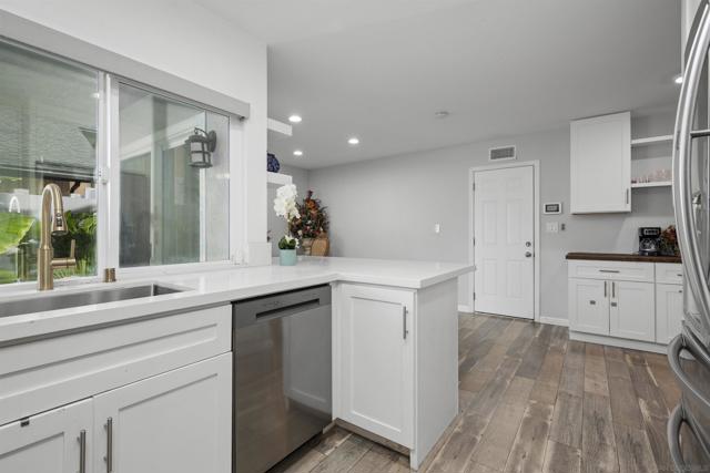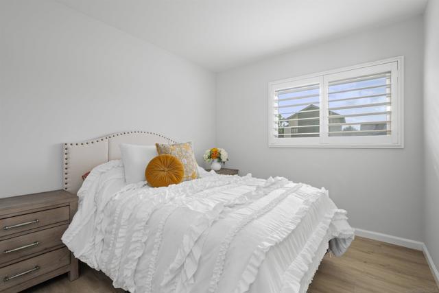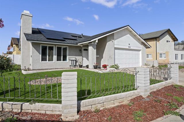 This 4-bedroom, 2-bath single-family home sits on a spacious corner lot and includes a 2-car garage. Both the front and backyard feature artificial turf for low maintenance and year-round curb appeal. Inside, you’ll find neutral tones and durable wood-look flooring throughout. The living room includes a fireplace, adding comfort and character. The kitchen offers custom cabinetry, stainless steel appliances, quartz countertops, and recessed lighting. Ceiling fans are installed throughout the home, and window shutters provide privacy and a finished look. Bedrooms include mirrored closet doors, and the home is equipped with solar panels to help lower energy costs. A whole-house water filtration system adds everyday convenience and improved water quality. Vinyl fencing surrounds the property for added privacy and security. Solid layout. Move-in ready. Easy upkeep. A strong opportunity in a desirable San Diego location. SELLER WILL CONSIDER ALL OFFERS THAT INCLUDE BUYER CONCESSIONS