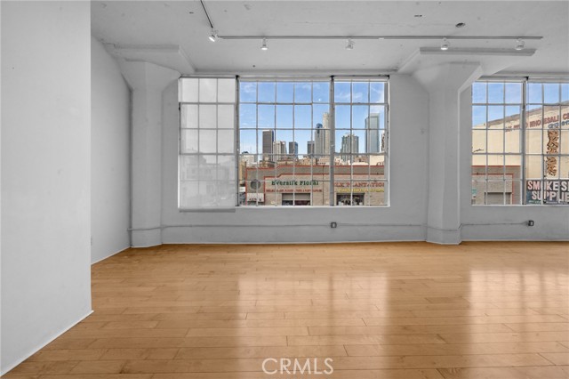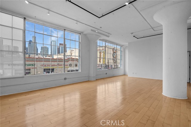 Spacious 1,000+ sq ft corner loft in the heart of Downtown Los Angeles featuring impressive skyline views and abundant natural light. This industrial-style residence offers soaring 12-foot ceilings, brand-new flooring, and an upgraded kitchen with modern finishes. The open-concept layout provides flexible living space ideal for a variety of lifestyles, with a privately positioned bedroom area for added separation.