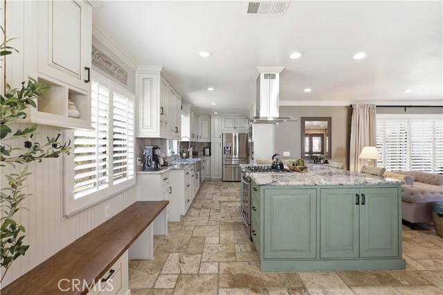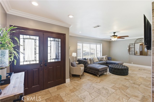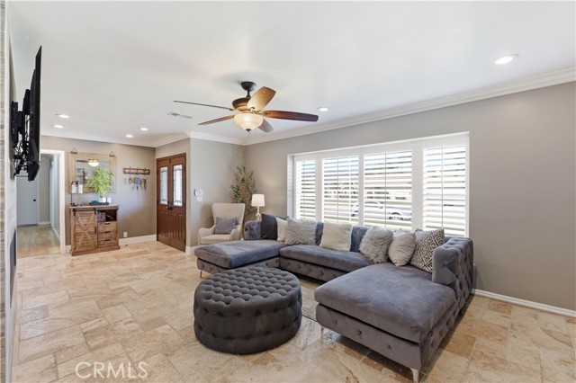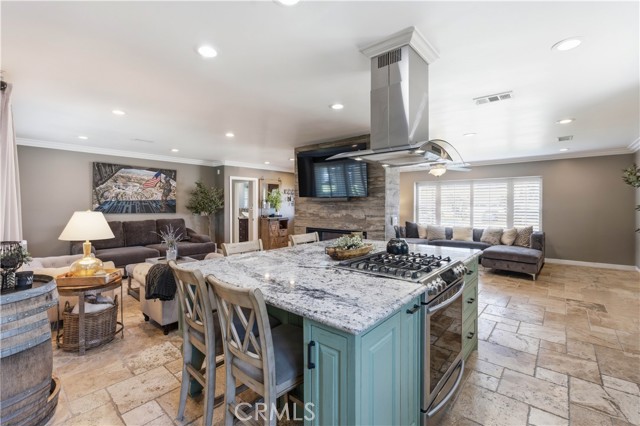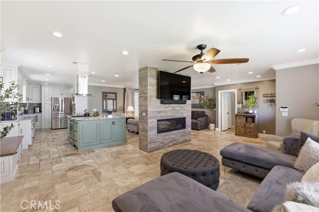 Welcome to this beautifully fully renovated 4 bedroom, 3 bathroom home offering 1,939 SqFt of thoughtfully upgraded living space on a spacious lot with RV access and modern energy-efficient features. From the moment you arrive, you’ll appreciate the pride of ownership showcased by the manicured landscaping, charming brick accents, and inviting curb appeal. Step inside to discover a completely renovated interior featuring stunning travertine flooring throughout, creating a warm yet sophisticated feel. The open-concept layout seamlessly connects the living, dining, and kitchen areas perfect for both everyday living and entertaining. A striking see-through fireplace serves as a centerpiece, elegantly dividing the living spaces while adding architectural charm and ambiance. The upgraded kitchen offers abundant cabinetry, stainless steel appliances, and a spacious island ideal for gatherings.