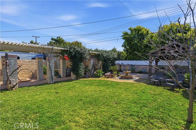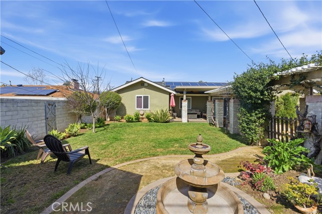Step outside to your private backyard retreat featuring lush grass, mature landscaping, a covered patio, and a tranquil fountain perfect for relaxing evenings or hosting guests. The expansive lot provides RV parking access and includes 220V connections ready for electric vehicle charging, offering convenience for today’s modern lifestyle.