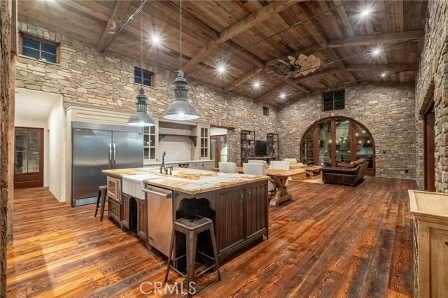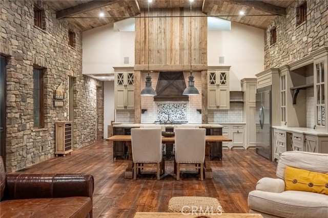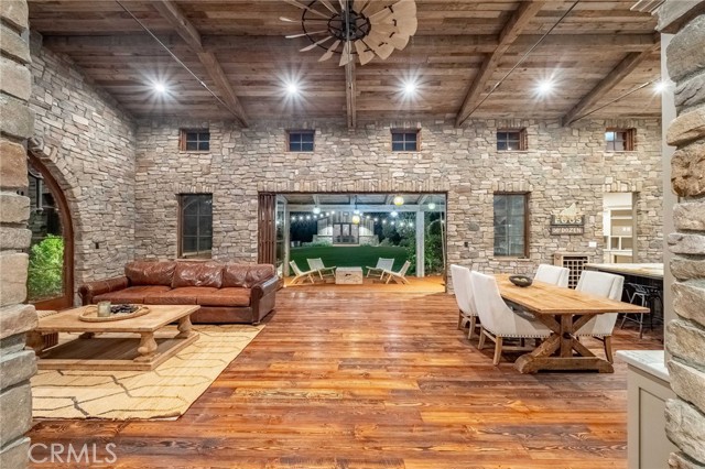 One of a kind, custom built, Solar Powered Stone Farmhouse on vast corner lot in charming Marloma neighborhood. An exterior crafted with extensive Antique Barn Wood and hand set El Dorado Stone creates a warm, soothing and relaxing Vineyard Vibe, while the well thought out design and amenities provides an exhilarating entertaining experience. Three separate structures feels like a movie set as it corrals a large open yard space. The main structure has close to 4000 SF of living space on the main floor with Douglas Fir Circle Sawn Wood Floors from Montana, plus all 4 Bedrooms enjoy Ensuite Full Baths. A Chefs Kitchen with large Zebrano Quartzite Island, Viking Appliance Package, Butlers Pantry, Dual Dishwashers and Large Double Door Refrigerator. The heart of the home boasts one of the best Kitchen & Great Room combinations you'll ever see with the "all stone" walled Great Room raising roughly a 16' High Windmill Fanned Ceiling with bi-fold doors that blend into a covered back porch with Fireplace, Outdoor Kitchen, Vegetable Garden and Bocce Court! An additional 1200 SF in the basement quenches many Entertainment moods from a Movie Theatre, Bar, Wine Cellar to a Fitness/Yoga Room! Not included in the Sq Footage is about 150 SF of loft space. Beyond the freshly sodded lawn is a 240 SF detached structure that can be an office or bonus area. Flanked in between those two structures is a huge 3+ car garage w/220V EV outlet, plus an outdoor 3/4 Bath. Conveniently located at the base of the Hill in Rolling Hills Estates close to restaurants, shopping, beaches, parks and easy access to freeways when driving to LAX, Stadiums, DTLA, Amusement Parks, Mountains & Desert! Combine all that with the coveted PVP School District and it becomes very challenging to find a better place to call home.