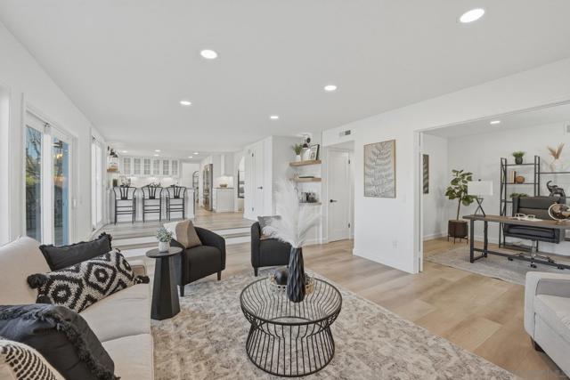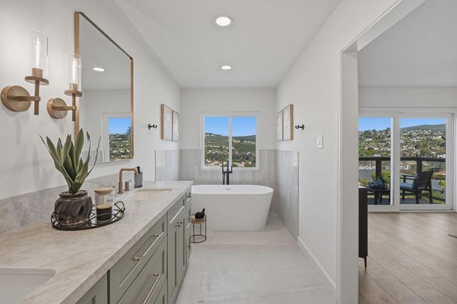 Once in a lifetime opportunity to own 2644 La Costa Avenue, an impeccably renovated dream home with wide open panoramic views and a premium lot that cannot be replicated. The property exudes sophistication from the moment you pull into the circular driveway and enter through the mature landscaping. Arched iron doors open into a well laid-out home where every inch has been professionally designed with high-grade finishes. Extra-wide plank floors lead your eye across the home, where breathtaking views can be seen from every room. The kitchen features Taj Mahal quartzite natural stone counters and Bosch appliances. The spacious living room has soaring ceilings, and a separate family room features a gorgeous herringbone fireplace. Custom woodwork throughout has been handcrafted by a local artisan. The downstairs bedroom can double as an office or den, and one of the three full bathrooms is also downstairs. The primary suite features a gigantic bathroom with a luxury shower and soaking tub, walk-in closet and a sliding door that leads to a balcony overlooking the La Costa Valley and the Omni La Costa Resort golf course. Located in the heart of La Costa, just 1 mile from The Beacon, with high-end shopping, dining and Equinox Fitness Club at your fingertips. This home is simply one of the finest products to ever grace The Avenue. No HOA / No Mello-Roos. The location is ultra convenient. The schools are top notch. The lot size is a generous 0.24 acre. This trophy property is an absolute show-stopper, turnkey ready for the new owner to step into the coastal La Costa lifestyle.