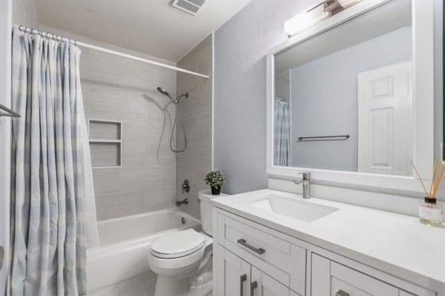 Move in ready home located in S. San Jose, this 4 bed, 2 bath home offers 1,632 sq ft of living with a layout that connects everyday spaces. The kitchen was refreshed in 2025 & features stainless steel appliances, a charming box window overlooking the backyard, & opens directly to the family room. The family room includes a ceiling fan & sliding glass door leading to the backyard. The separate living room features a vaulted ceiling & fireplace with mantel, flowing naturally into the dining area. The primary bedrm is generously sized w/ a wall length closet & large window, while both bathrooms were remodeled in 2023, including an updated primary bathroom with a spacious step in shower & a hall bathroom w/ shower over tub. Additional improvements include central air conditioning added in 2024 & dual pane windows throughout. The backyard is designed for low maintenance enjoyment with turf installed in 2025, Japanese maples, a lemon tree, & a pergola covered patio with a mix of hardscape & green space. Enjoy being within walking distance to Edenvale Gardens Regional Park & Hayes Mansion, with close proximity to Martial Cottle Park, Blossom Hill Caltrain Station, Highways 101, 85, & 87, Monterey Road, & Blossom Hill Road, plus a short drive to Westfield Oakridge for shopping & dining.