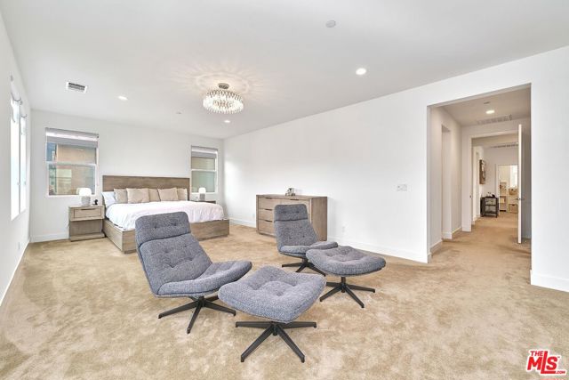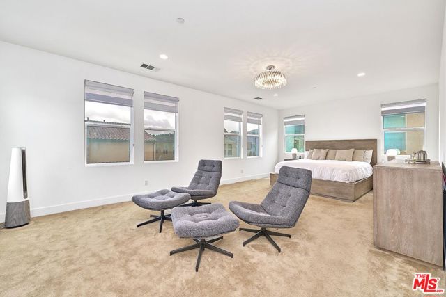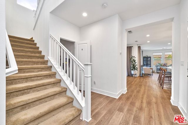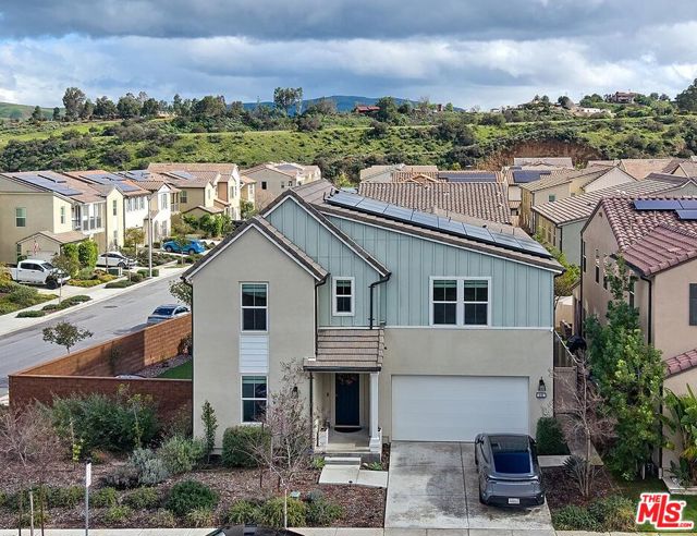 Rarely offered, this extensively upgraded detached end-unit is situated on one of the five largest and most private lots within this gated luxury community. Ideally positioned with open frontage and only one adjoining neighbor, this premium location offers a rare sense of openness, enhanced privacy, abundant natural light, and serene mountain and greenery views. Offering approximately 3,114 square feet of living space, this thoughtfully upgraded residence features 4 bedrooms and 3 bathrooms (5 bedrooms on title). A desirable main-floor bedroom and bathroom with walk-in shower provide ideal flexibility for guests or multi-generational living. The spacious upstairs loft can easily be converted into a fifth bedroom if desired.A major highlight is the 2-year-new, fully OWNED Tesla solar system featuring 24 roof-mounted panels, Powerwall, Backup Gateway, and Wall Connector. The seller will pay off the solar system in full at close of escrow, providing true ownership with no lease and no loan. Enjoy substantial energy savings while comfortably running A/C throughout the summer and conveniently charging your EV at home. Extensive builder and post-close upgrades are showcased throughout, including custom countertops, upgraded cabinetry and hardware, crown molding, solid-core doors, premium flooring, custom-made shutters, cased windows, designer lighting, and a fully upgraded kitchen featuring a Whirlpool and LG appliance package and wrapped island. The spa-inspired primary bathroom offers a full-height tile shower and elevated finishes. Additional enhancements include epoxy garage floors with custom storage solutions and professionally designed landscaping and hardscape. Immaculately maintained and truly model-like, this home reflects exceptional pride of ownership. Located in the highly sought-after Bedford community, residents enjoy resort-style amenities including multiple pools and spas, a saltwater lap pool, state-of-the-art fitness center, parks, walking trails, dog parks, and a clubhouse. Conveniently located within walking distance to Bedford Marketplace featuring Starbucks, dining, and more, with easy access to the 15 Freeway. A rare combination of premium lot placement, extensive upgrades, fully owned solar, and resort-style living this exceptional home truly stands out above the rest. Welcome Home! Click the 'Virtual Tour' for a fully immersive 3D walkthrough. https://my.matterport.com/show/?m=9TKvkFU8Z7B