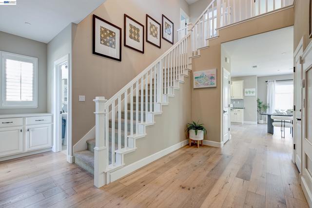 Nestled in the heart of Dublin, this former model home offers the perfect blend of luxurious living and prime location. This gorgeous home has more than $200K in upgrades. Gourmet kitchen comes complete with a four-burner gas cooking range, built-in Bosch refrigerator, center island, stainless appliances, granite counters with full back splash, cabinets with chocolate etching, pendant lights, recessed lights, wood floors, food closet. Tastefully designed family room with a fireplace and built-in bookshelves that create an atmosphere of contemporary sophistication and warmth. Built in 2012 as a model home with over $200k in upgrades. This 2-story home has an elegant living area of 2,457 on a view lot of 4,675. 5 beds, 3 baths, 1 bed/bath on first level. Home boasts architectural elements such as wainscoting walls, crown molding, and luxury wood floors. The primary en-suite bathroom is a luxurious sanctuary offering separate vanities, his & her closets, soaking tub and a stall shower. Added upgrades include solar, tankless water heater, water softener, EV adapter, laundry room with sink, washer/dryer included. Walking distance to top rated schools, Fallon sports park, Jordan ranch park. Minutes away from shopping centers, SFo outlets restaurants, Bart, Library. EZ access to 580/680