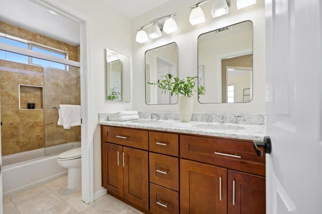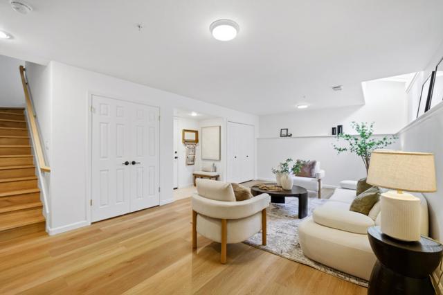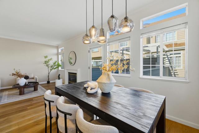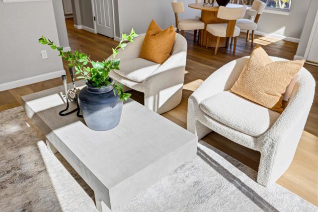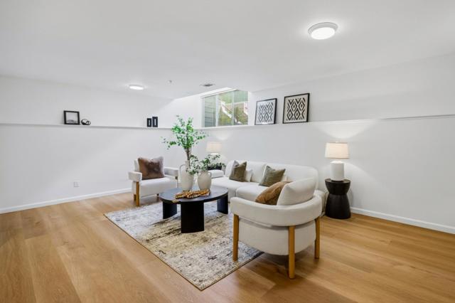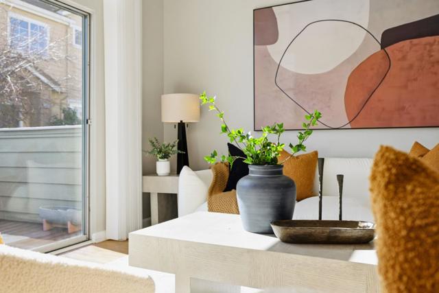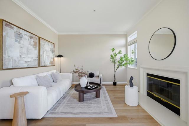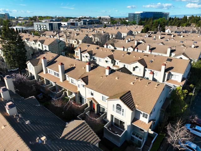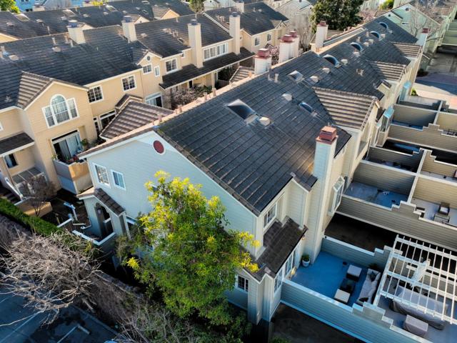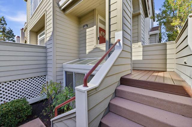 Nestled among majestic redwood trees in a peaceful, well-maintained community, this beautifully remodeled end-unit townhouse offers 2,156 sq ft of light-filled living that truly lives like a single-family home. With windows on multiple sides and thoughtfully curated upgrades throughout, this move-in-ready residence delivers both comfort and sophistication. The main level offers a bright living and dining area opening to a private balcony, plus an updated kitchen with gas stove, wine bar, and ample cabinetry flowing into a cozy family room with a fireplace. A second, larger balcony is perfect for BBQs and gatherings. Upstairs features three spacious bedrooms and two full baths, including a primary suite with a walk-in closet, dual sinks, soaking tub, and separate shower. The lower-level bonus space is ideal for an office, gym, or media room, with direct access to a side-by-side two-car garage. Conveniently located near Highways 101, 237, and 85, just minutes to major tech campuses. HOA amenities include a pool, spa, playground, water, garbage, and earthquake insurance for easy, low-maintenance living.
