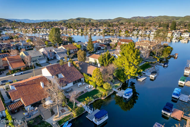 Welcome to this serene lakefront home in Westlake Village, ideally located just five houses from the main channel. 3828 Mainsail Circle offers 4 bedrooms, 3 bathrooms, and 2,222 square feet designed for easy, relaxed lakefront living, complete with a private dock. The home's light-filled interiors and soaring vaulted ceilings create an inviting sense of openness while the rich hardwood floors flow throughout and the expansive windows frame tranquil lake views. The living and dining spaces are perfectly arranged for both everyday living and gracious entertaining. Upstairs, the primary suite provides a serene sanctuary with its own private balcony overlooking the water. The primary suite includes an ensuite bathroom and ample closet space, while two additional bedrooms share a well-appointed connected bathroom. The conveniently located upstairs laundry closet enhances everyday ease. Recent exterior improvements, including smooth stucco, new paver hardscaping, and updated lighting, create a clean and refined contemporary look. Launch your boat from your private dock for an evening cruise around the lake or across the main channel to nearby dining and shopping. The Sunday Westlake Village Farmers Market and beloved local destinations are all close at hand, completing the effortless lifestyle this special property provides. This is Lakefront living at its most relaxed and rewarding-- a rare opportunity to enjoy the beauty, recreation, and charm of Westlake Village from your own private waterfront home.