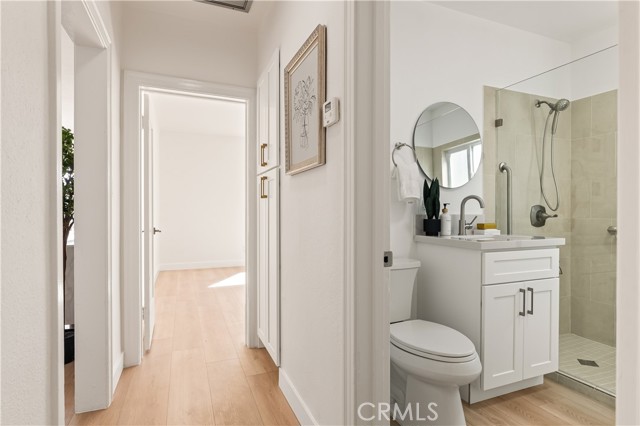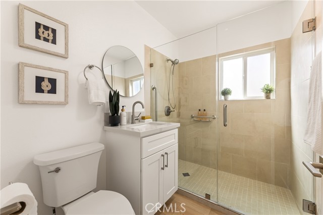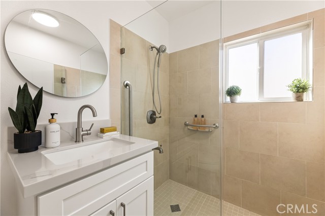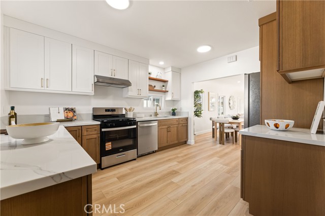 The renovated kitchen features custom cabinetry, quartz countertops, brand-new stainless steel appliances, and a built-in wine cooler, opening to the dining and living areas for a modern, connected feel. The bedrooms provide a comfortable retreat, while both bathrooms have been tastefully updated with clean, contemporary design.