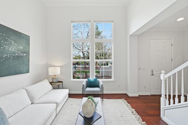 Move right in to this turn-key 3-bedroom, 2.5-bathroom townhome offering 1,697 square feet of thoughtfully designed living space, steps from Ryland Park and minutes from downtown San Jose. The split-level layout impresses from entry, with a soaring double-height living room, floor-to-ceiling picture windows, and rich hardwood floors throughout. The open-concept kitchen features sage green cabinetry, granite countertops, a large island with sink and bar seating, stainless steel appliances, and seamless flow into the dining area and family room. A private front deck offers a quiet outdoor retreat overlooking the park. Upstairs, the primary suite includes a generous walk-in closet and en-suite with double vanity, soaking tub, and walk-in shower. Two additional bedrooms and a versatile upper-level lounge provide flexible space for any lifestyle. Energy-efficient double-pane windows, central AC and heating, in-unit laundry, and an attached two-car garage complete the package. Located in the San Jose Unified School District with easy access to Light Rail, Highways 87 and 280, and San Jose International Airport.