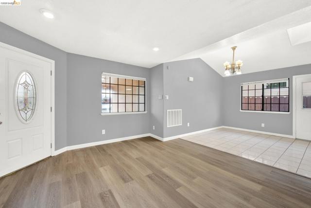 Just Finished Updating, Move-In Ready! 3 Bedrooms 2 Bathrooms. Enter the Home to an Open Area Consisting of Living Room-Dining Room and Kitchen in front, Down the hall to the Bedrooms and Bathrooms. Primary Bedroom and Dining Room both have High Ceilings. Primary bedroom has attached bathroom with double sink, Huge Closet with plenty of shelves and hanging bars, Patio Doors to backyard patio and storage shed. Front Yard can accommodate several vehicles behind the Wrought Iron Gate/fence Including a one car Garage with Laundry Hook-ups or use the space as a outdoor seating area.