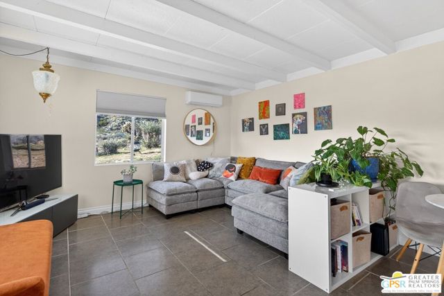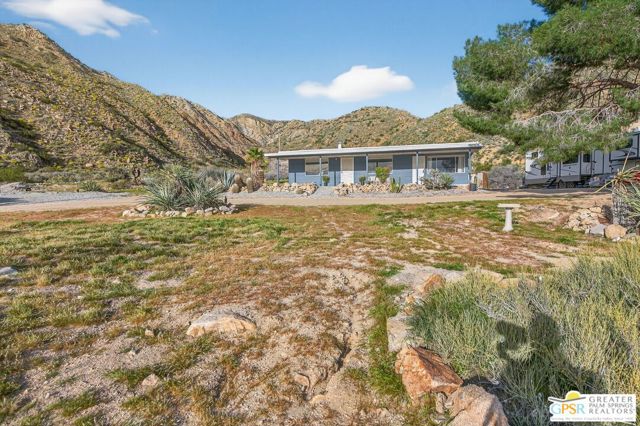 Escape to your own private desert sanctuary set on 5 acres of scenic land in Morongo Valley. Perched on a rustic mountainside, this FURNISHED move-in-ready home offers sweeping views, privacy, and endless potential to create your ideal retreat. All just a short drive from Palm Springs and Joshua Tree. Inside, the home features an updated full kitchen with breakfast bar, laundry and new mini-split A/C units. Large windows frame stunning mountain vistas from every room. Outdoors, the property is designed for flexibility and adventure. A new gravel parking pad and RV parking with hookups make it easy to host guests or accommodate desert explorers. The expansive acreage offers a blend of usable flat land and scenic hillside terrain, providing space to build, garden, create trails, or simply enjoy the serenity of wide-open skies and star-filled nights. Whether you're seeking a peaceful full-time residence, weekend getaway, or income-producing short-term rental, this secluded hideaway delivers the perfect balance of comfort, privacy, and natural beauty.