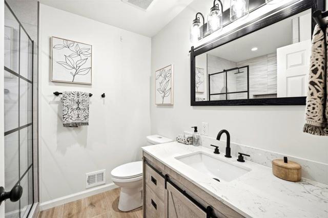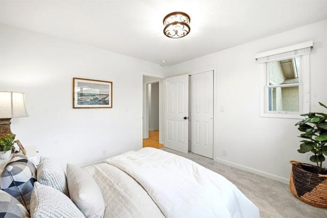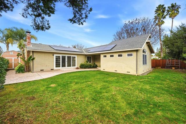 Beautifully designed single story home on a quiet cul-de-sac in a safe and friendly neighborhood. The open floor plan showcases a spacious kitchen and family room with a large island, vaulted ceilings, and abundant natural light. The expansive primary suite offers approximately 800 square feet with a walk-in closet and spa-inspired bath featuring dual sinks, separate shower, and jetted tub. A second en-suite bedroom, two additional bedrooms with ample closet space, and a newly renovated bathroom provide flexibility and comfort. Enjoy front and back lawns, a stamped concrete patio perfect for entertaining, paved side walkways, mature redwoods, and a 10x12 barn-style shed with loft and work area. A huge attic with pull-down ladder, flooring, lighting, and electrical outlet offers exceptional additional storage. Ideally located near walking trails, Paradise Park, grocery stores, restaurants, and the community recreation center with pool, gym, pickleball, and fitness classes. A wonderful combination of space, design, and location.
