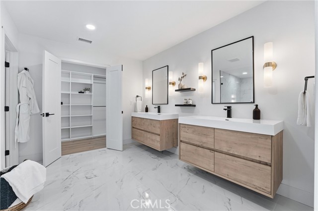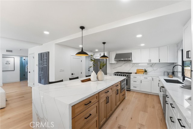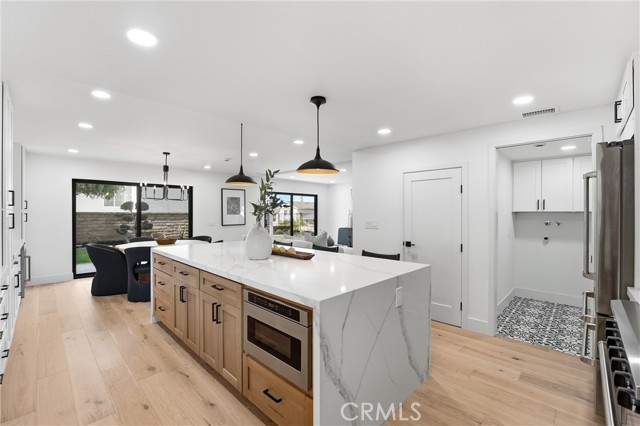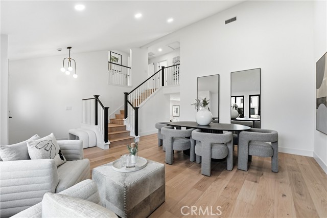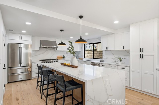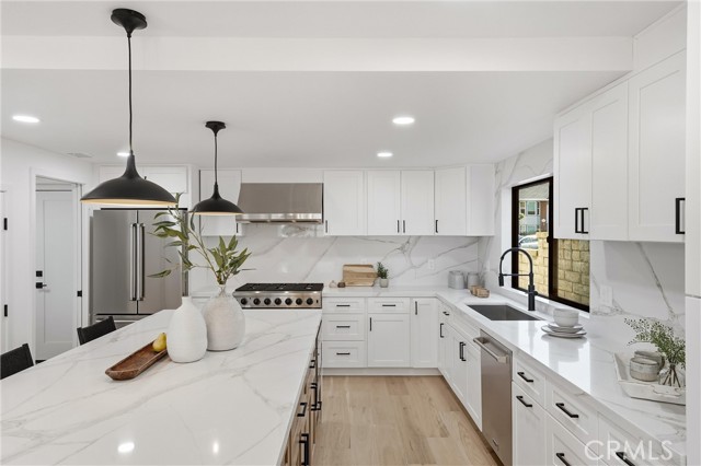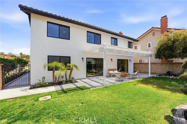 Welcome to this stunning, fully permitted, turnkey remodel offering 4 bedrooms, 3 bathrooms, and 2,722 sq. ft. of thoughtfully designed living space, ideally situated on a quiet cul-de-sac. Every detail and designer finish has been carefully curated to create a move-in-ready home that blends modern luxury with everyday functionality. The exterior boasts refreshed landscaping, a new irrigation system, elegant exterior lighting, and a beautifully crafted backyard pergola—perfect for outdoor entertaining or relaxing evenings at home. Inside, you’ll find brand-new windows throughout and a highly desirable first-floor bedroom and full bath—ideal for guests or multigenerational living. The formal living and dining room welcomes you with a cozy fireplace and an inviting atmosphere for gatherings. The heart of the home is the open-concept family room and completely reimagined kitchen. Designed for both entertaining and daily living, the kitchen features a dramatic 9-foot island, eat-in dining area, new energy efficient appliances which include a 42 bottle, dual zone wine and beverage cooler, 6-burner gas range, Fantasy Gold quartz countertops, and a spacious walk-in pantry. Upstairs, retreat to the luxurious primary suite showcasing a spa-inspired bathroom with double vanities, a generous walk-in closet, and a stunning wet room complete with a soaking tub and oversized shower. Two additional bedrooms, a full bath, and a versatile bonus room or optional fifth bedroom with walk-in closet complete the upper level. Included in your HOA membership is the Sun and Sail Club. Amenities include Tennis, Pickleball, Sport courts, Pools, Hot tub, Sauna, Fitness center, BBQ area and clubhouse. The association also sponsors social events throughout the year for members. This exceptional home offers the perfect combination of modern upgrades, flexible living space, and timeless design.