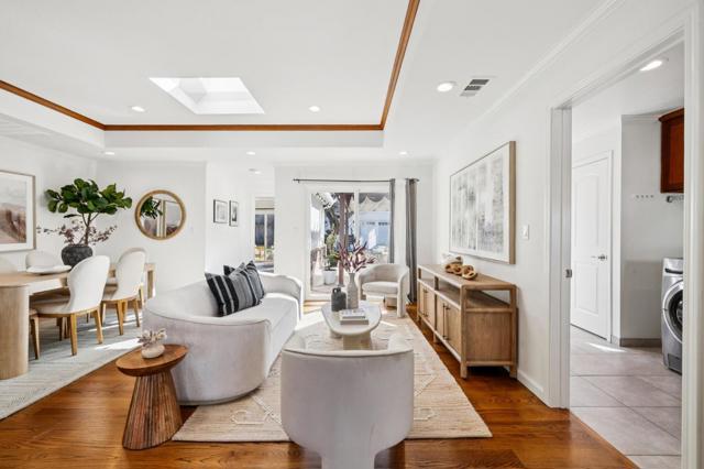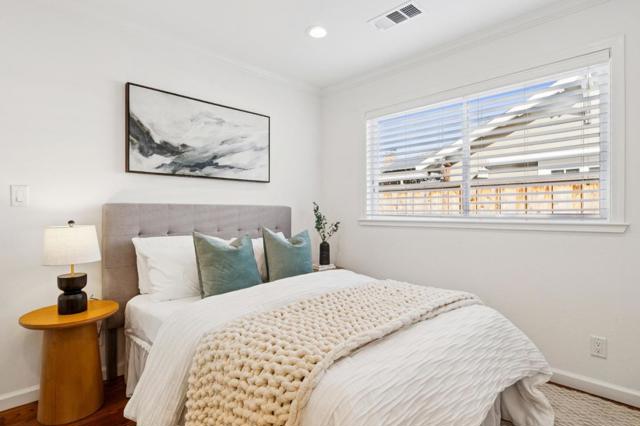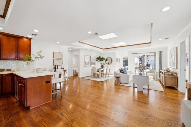 Completely remodeled in 2016 in the highly sought-after Cambrian neighborhood, 3 bedrooms, including a primary suite and junior suite, 3 full bathrooms, plus a detached dedicated office and a den/game room to enjoy! Top-rated Cambrian schools, including Leigh High School! The open-concept design features gleaming oak hardwood floors and two skylights that fill the space with natural light. The chefs kitchen offers espresso birch cabinetry, quartz countertops, subway tile backsplash, breakfast bar, gas range, wine refrigerator, and stainless steel appliances. Seller finished the 2-car garage as a den/game room with a new mini-split system for heat & A/C, plus a dedicated private office ideal for working from home. The primary suite boasts a raised ceiling, walk-in closet, and spa-like bath with travertine tile, dual vanities, jetted tub, and oversized frameless shower. A guest suite with full bath adds flexibility.Upgrades include new interior & exterior paint (2026), new exterior/interior light fixtures (2026), new landscaping, solar lights, flowers, plants and mulch (2026).Spacious backyard with lounge and dining area, gazebo with shade cover to enjoy seamless indoor/outdoor living and fruit trees.Walk to Cambrian Park Plaza, St. Francis Cabrini school, shopping and dining!